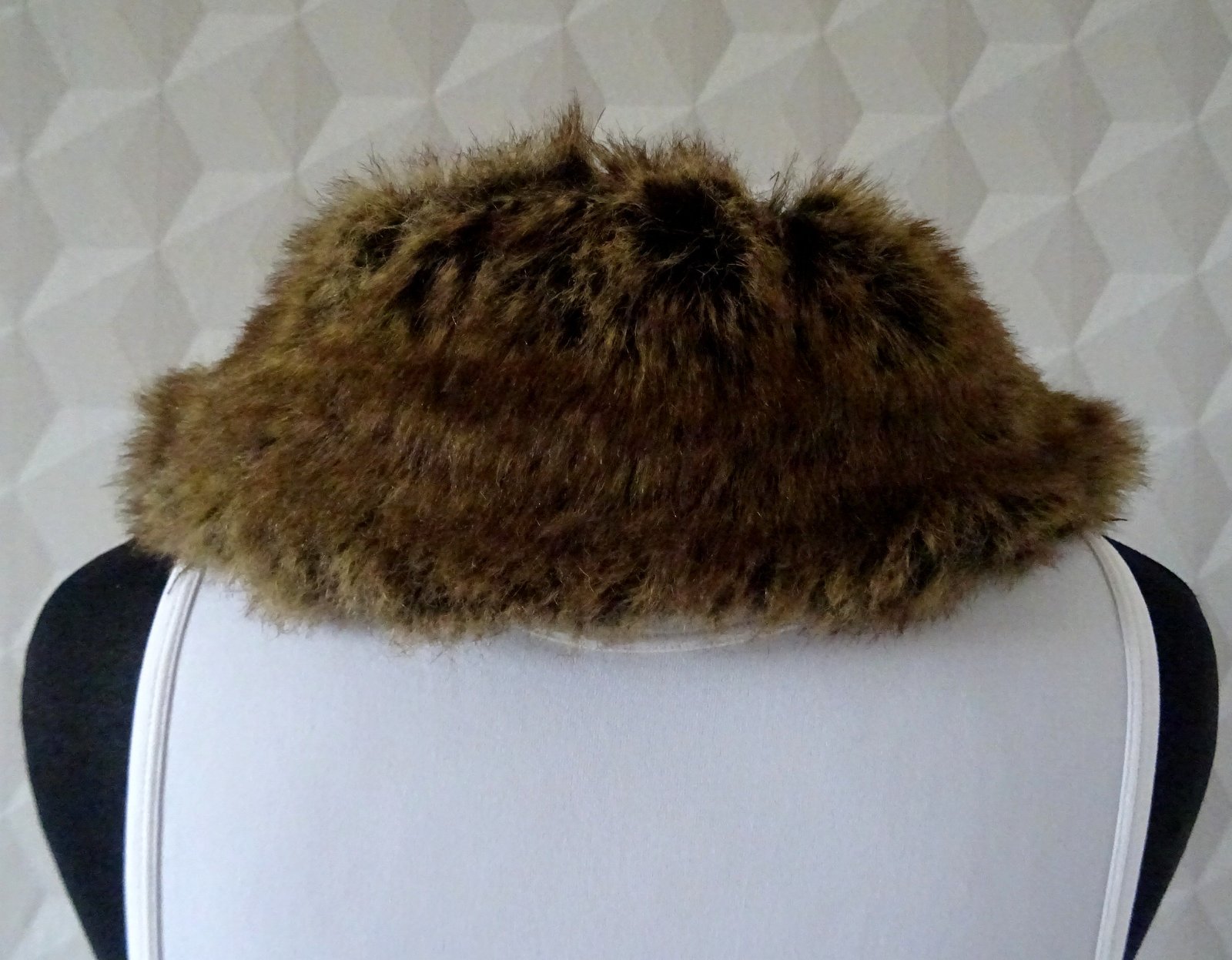 Kožušinkový golier v hnedých odtieňoch, dlžka 76cm, šírka 15cm.