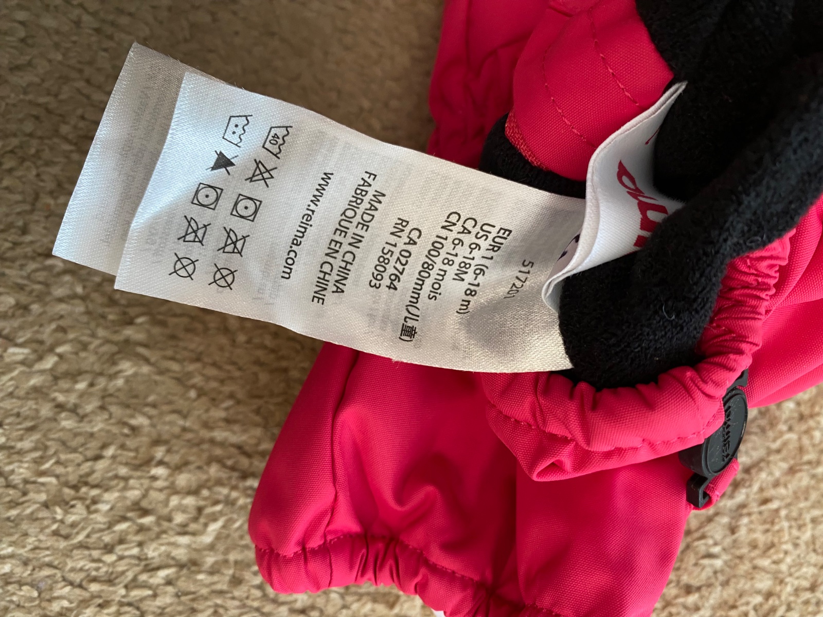 Veľmi dobrý nosený stav, pozrite prosím fotky. Zateplené flísom, naozaj nepremokavé a neprefúkavé. Teplé. Výborne sa obliekajú. Značené ako veľkosť 1 na 6 - 18 mesiacov, ale reálne kľudne do 2,5 rokov. Naozaj kvalitné. Reima rukavice sú jediné, v ktorých má dcéra teplé rúčky.