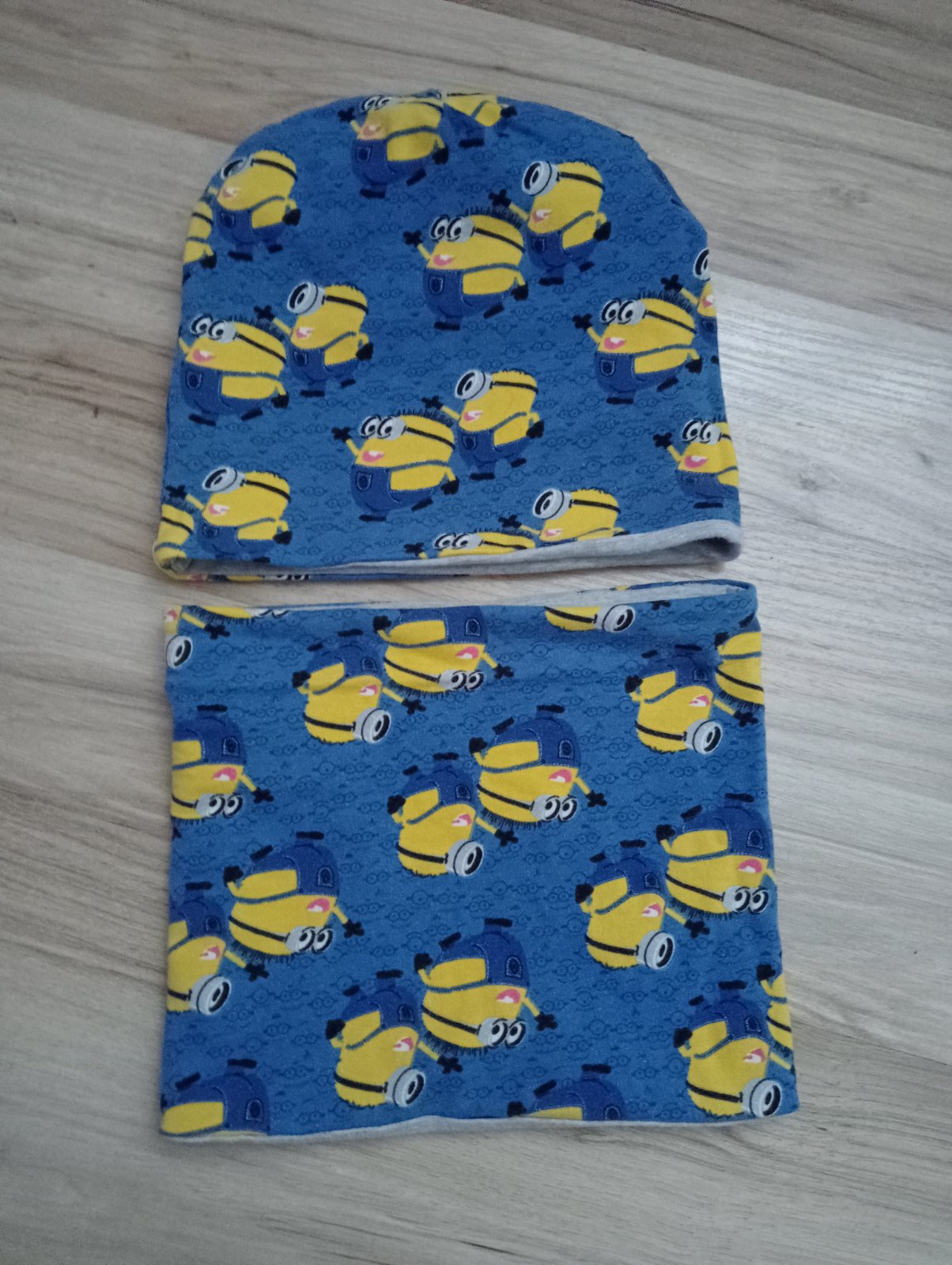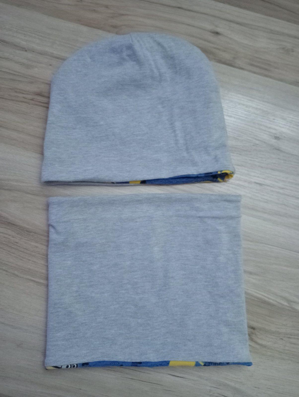 Zimný set Na obvod hlavy 48-50 cm (cca 2-3 roky) Materiál: teplákovina a flees Nakrčník: výška 20,5 cm Čiapka: šírka 23 cm, výška 20 cm