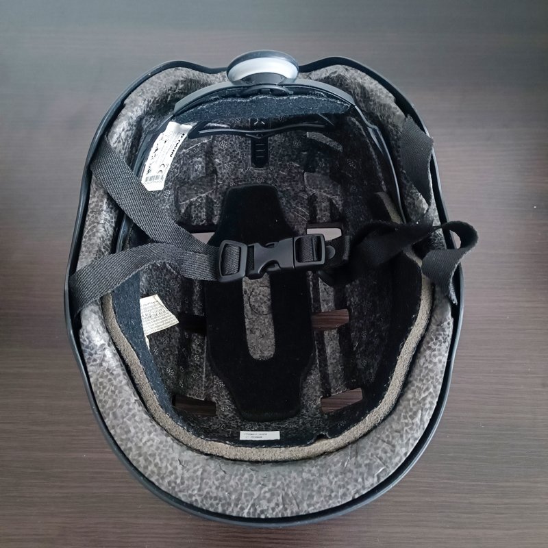 BTWIN cyklistická prilba Teen 500 čierna. Veľkosť S (52-55cm). Má len minimálne známky použitia. Upínací mechanizmus (pod bradou) aj nastavovací (v zadu na hlave) sú bez poškodenia a funkčné. Syn ju používal pri bicyklovaní ale aj na klzisku.