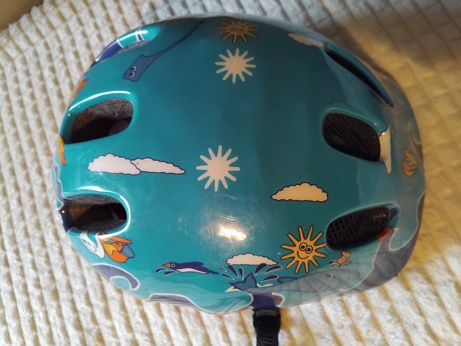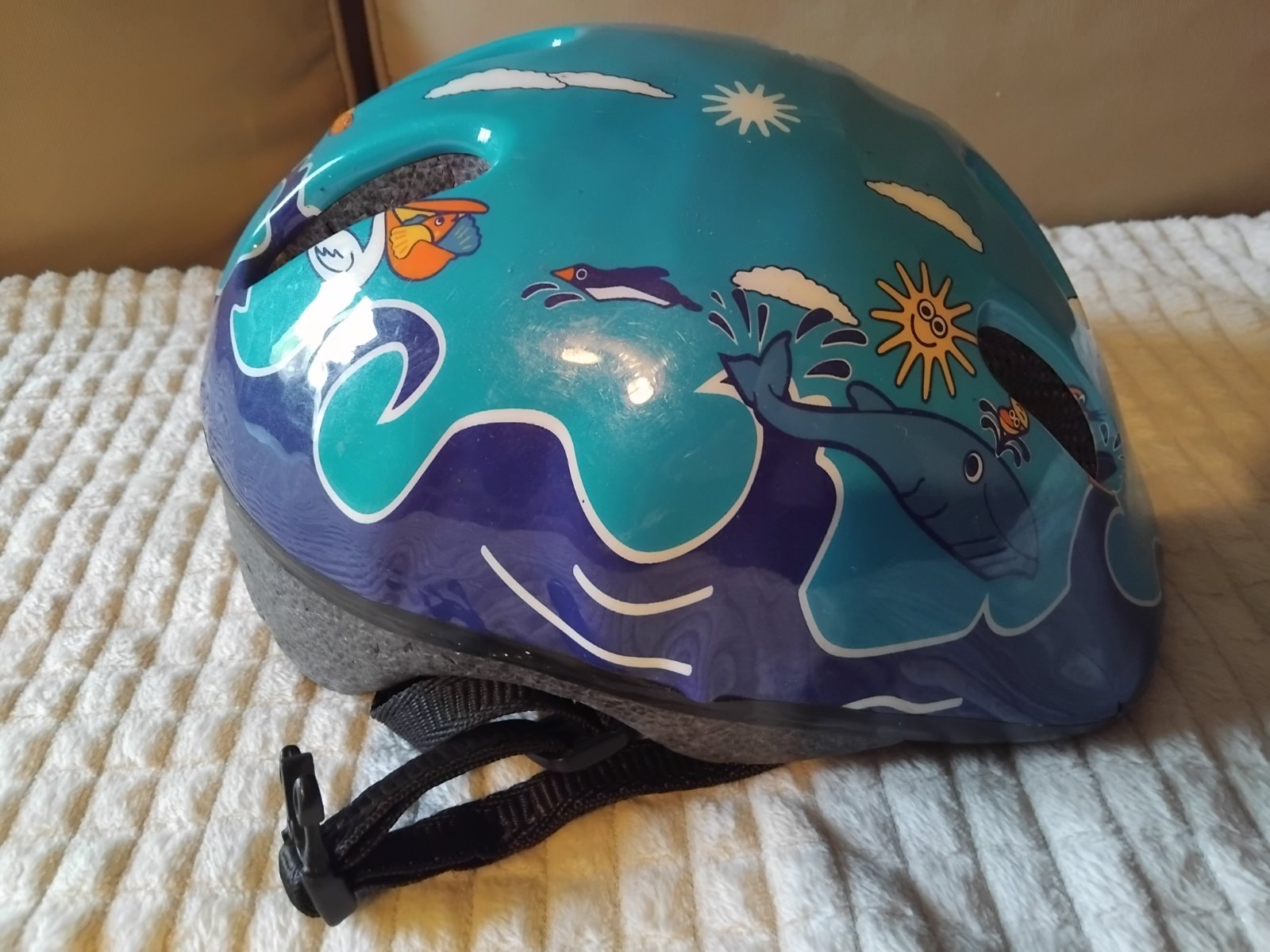 Detska prilba (morsky svet), velkost neuvadza, ale pre skolkarsky vek. Male poskodenie odfotene