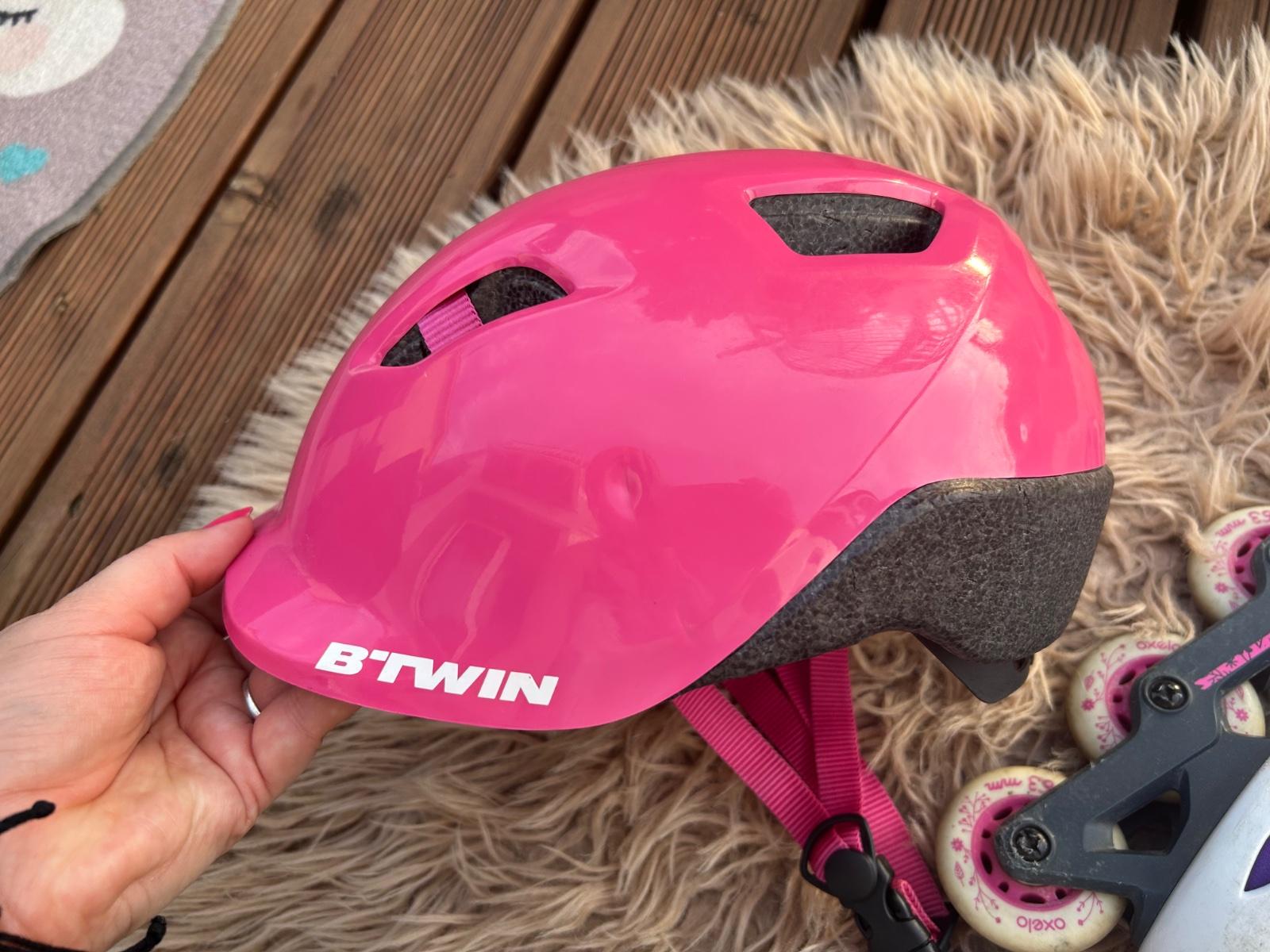 Predám korčule Oxelo nastaviteľné velkost 32-34, vn. dĺžka 20-21,5cm. Helma 53-56cm. Korčule 10€, helma
