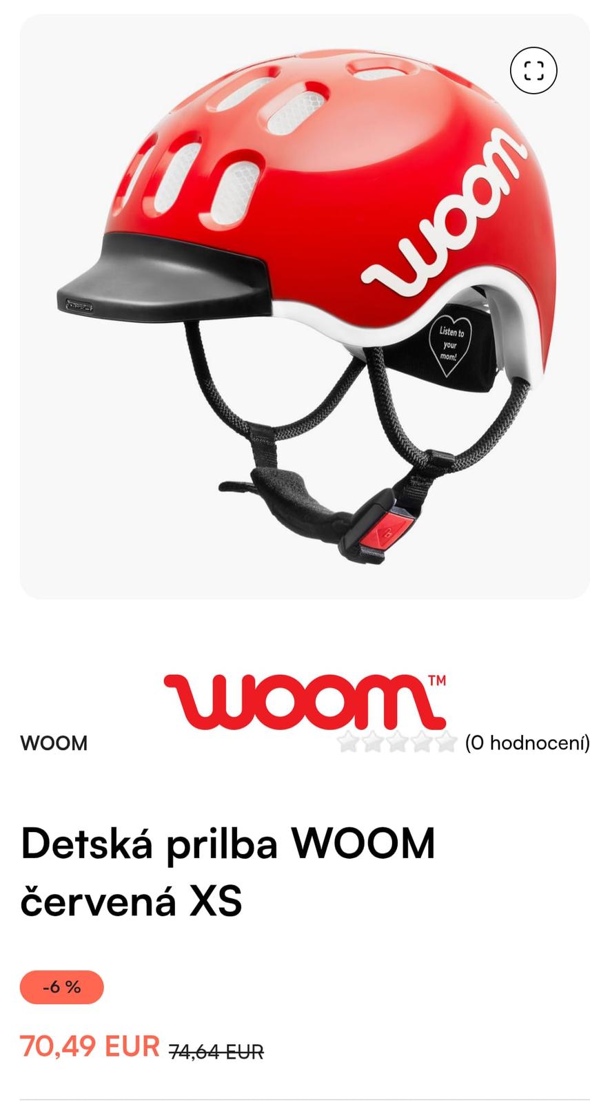 Predam novu nastavitelnu detsku prilbu Woom velkost XS, farba cervena. Nova, v originálnom baleni. Cena 43 eur