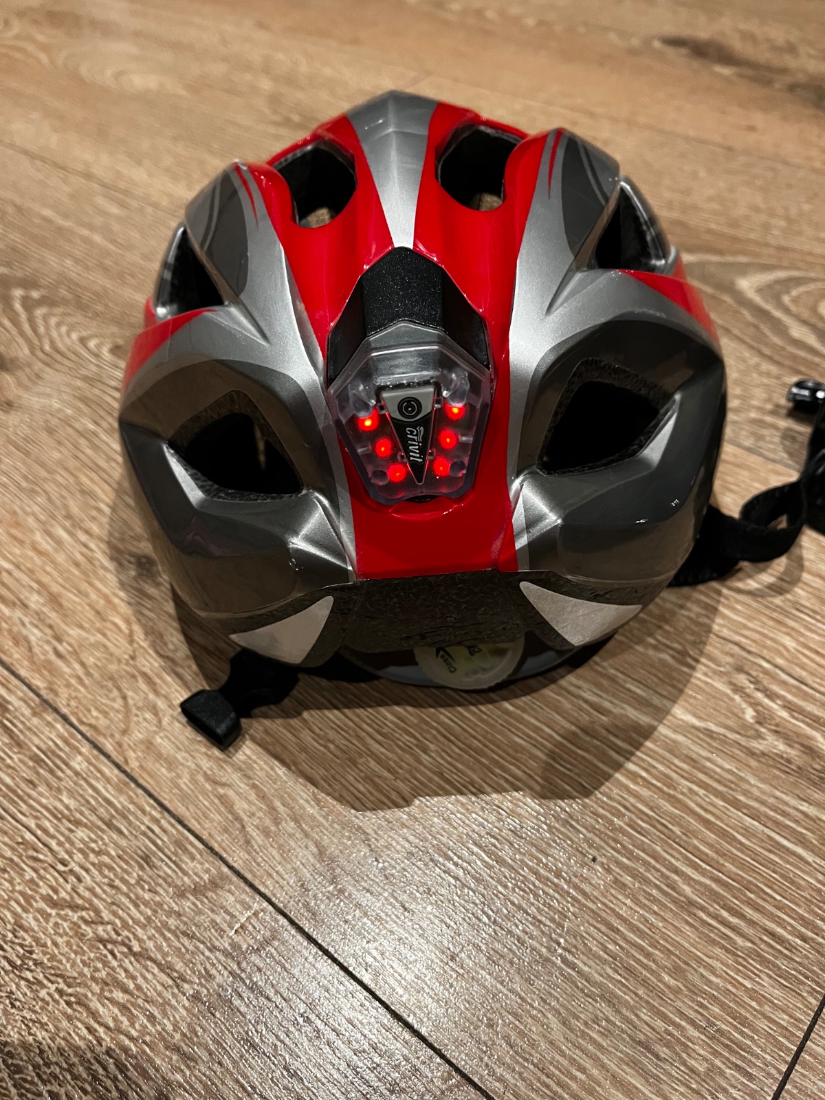 Malo nosená prilba bez poškodení, nastaviteľná veľkos 49 - 54 cm, s výstražným svetlom