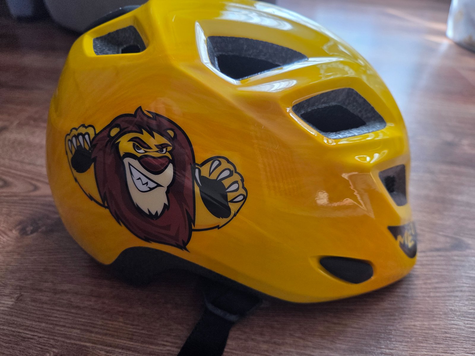 Používaná detská cyklistická prilba zn. MET, v dobrom stave, má zopár šmúh. Píše 46-53cm, sedí skôr na tú spodnú hranicu, pre najmenšie deti.