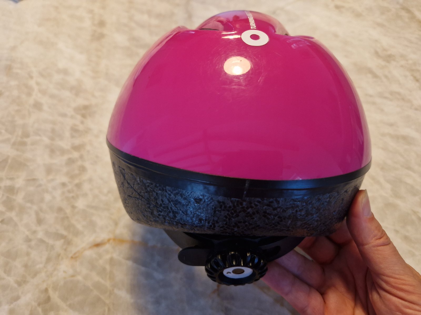 Predam dievcensku helmu, velkost 46-53 cm, ruzova, cena 10€. Vzadu sa da helma utiahnut kolieskom. Koliesko blika.