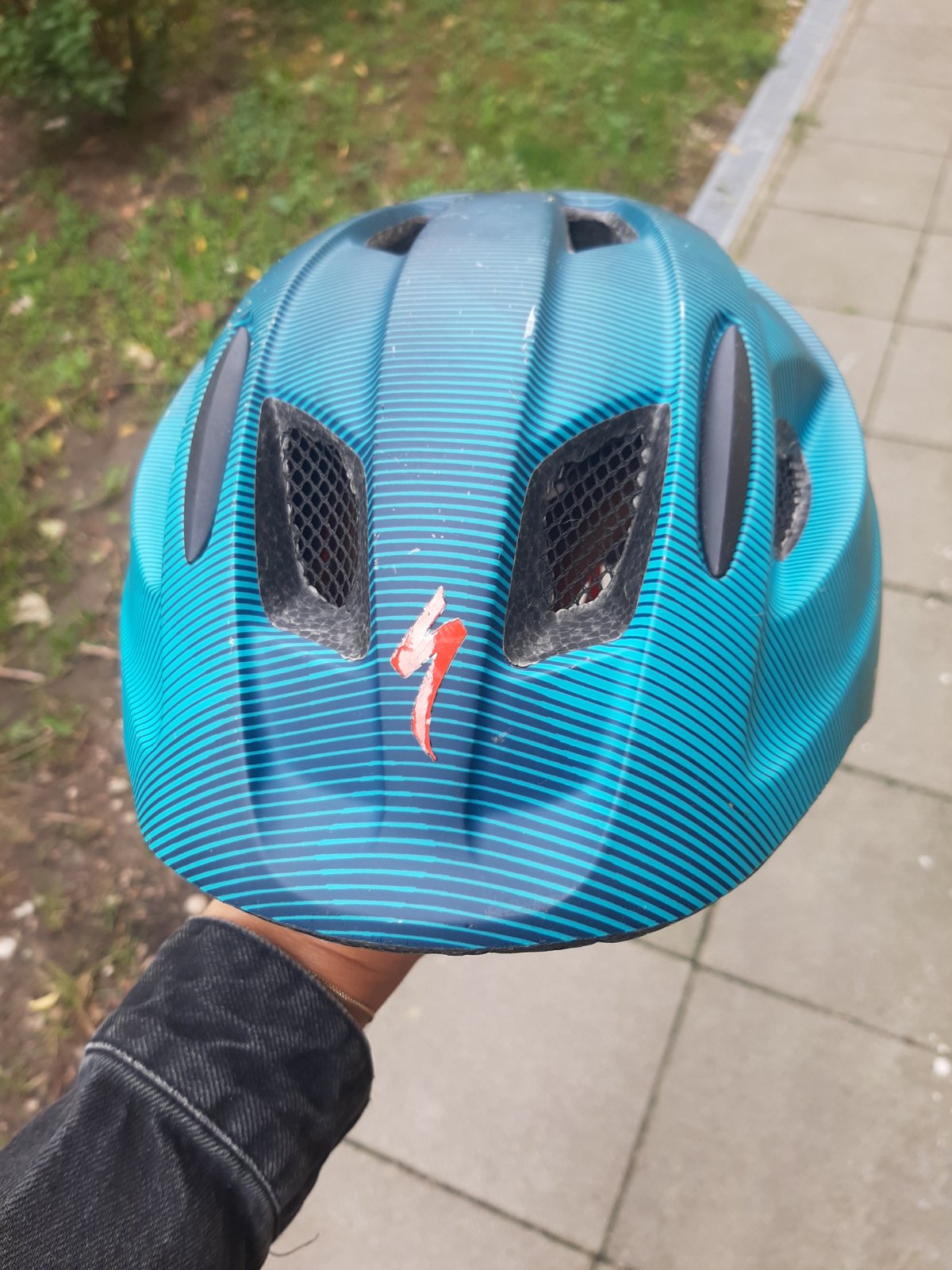 Parkrat pouzita prilba, rychlo syn potreboval vacsiu.