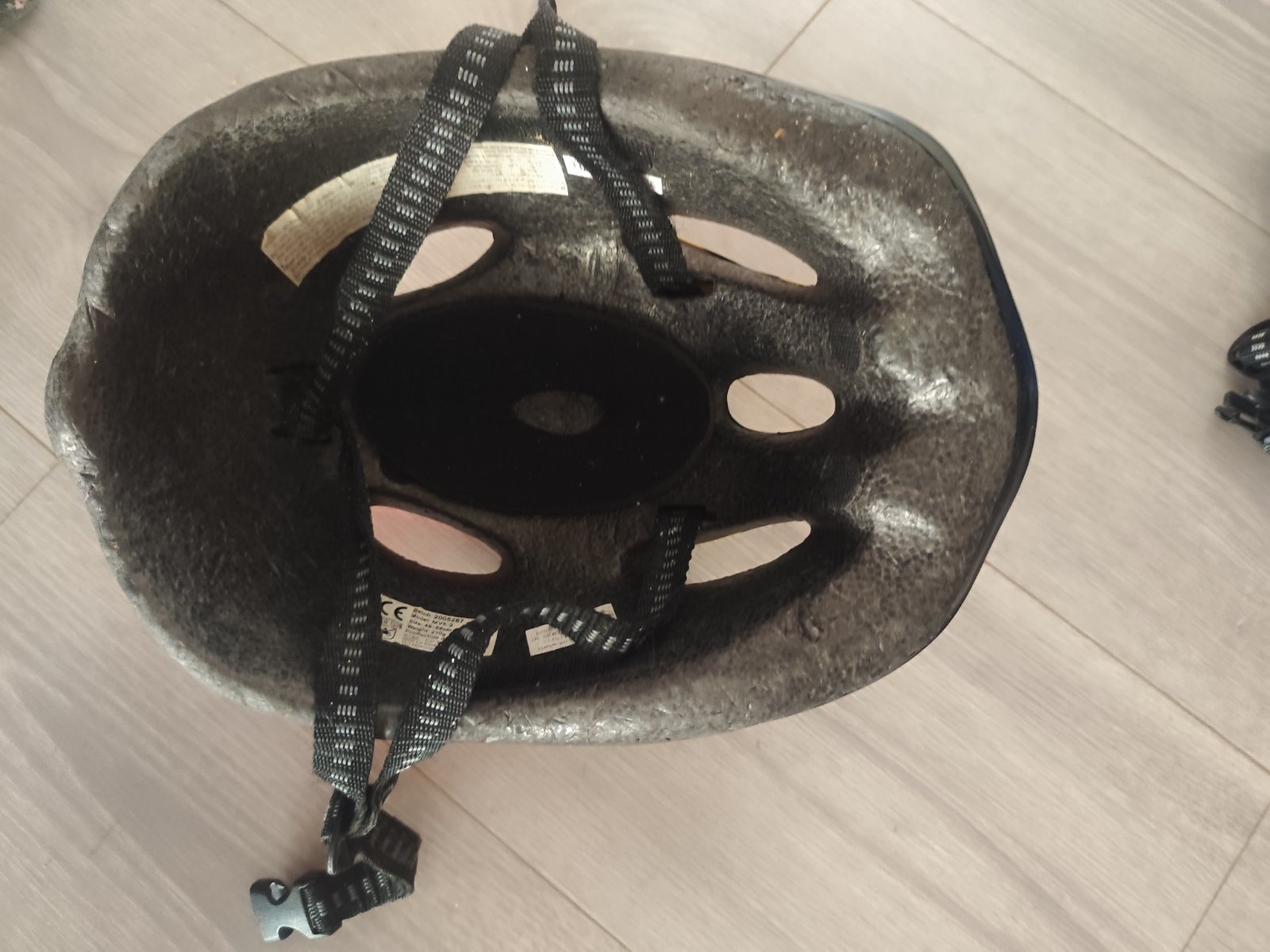 Párkrát použitá prilba, ako nová, sivozelená, veľkosť (obvod hlavy) 49-54 cm. S-ko iba tipujem, rozhodujúci je obvod. Vzadu je aj blikačka.