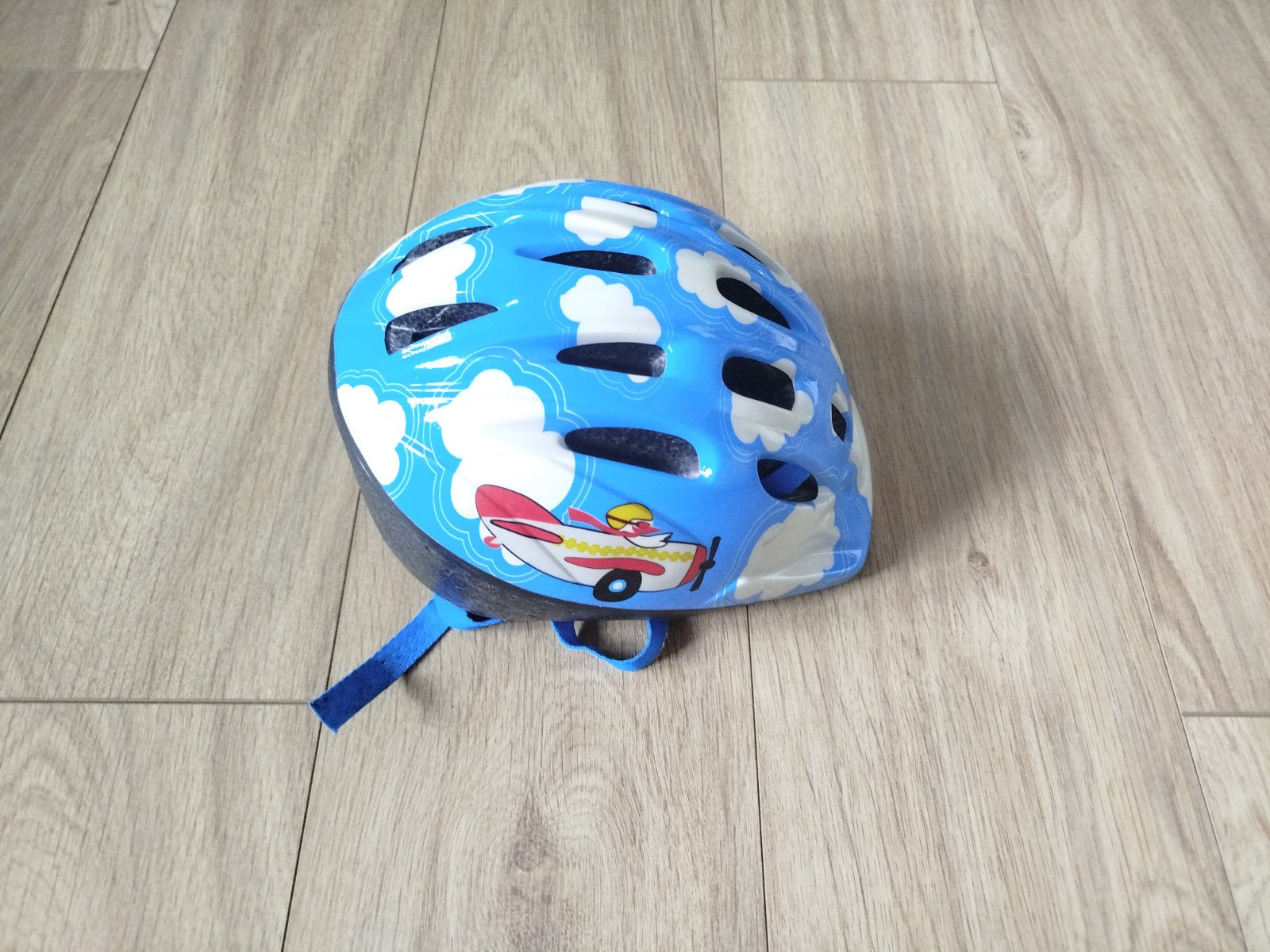 Pekná prilba ako nová, neobitá, nebúraná, nepoškodená, pre chlapcov od cca5 do 9/10 rokov, nastavitelná dĺžka aktuálne nastavený obvod 45 cm čelo temeno.