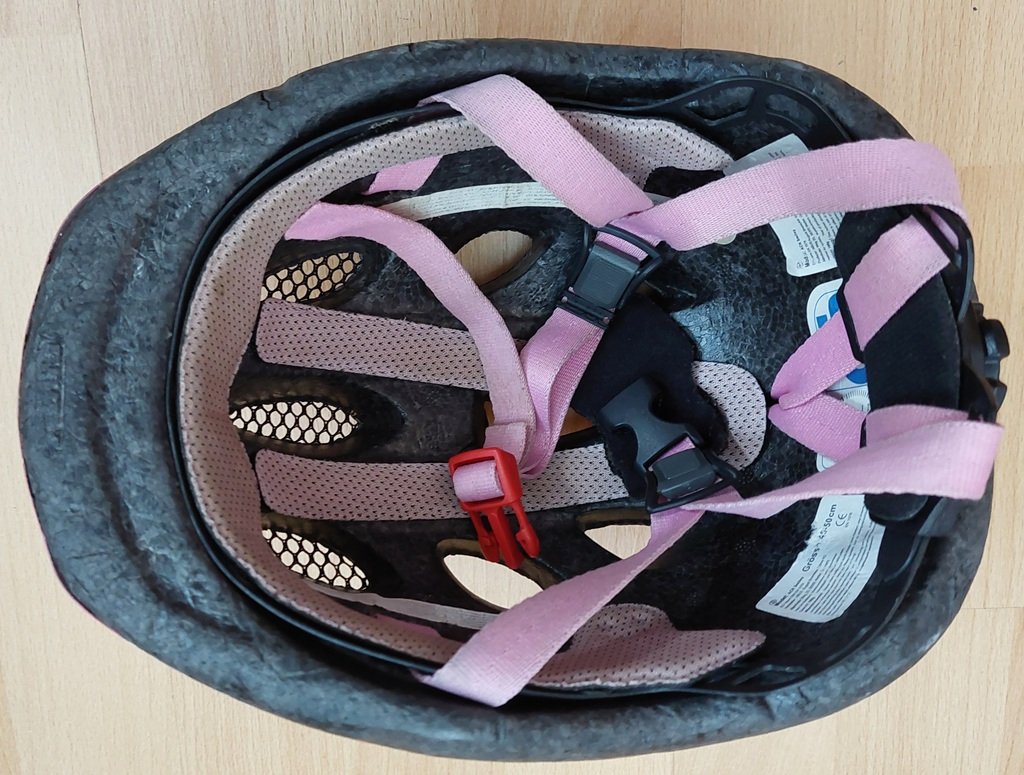 Dievčenská cyklistiská prilba kvalitnej značky Abus, model ACK Smiley, veľkosť 45-50 cm, nastaviteľné koliesko vzadu, dcérka nosila od cca 2,5 - 5 rokov, výborne sedela na hlavičke, nosená, stále plne funkčná a určite ešte poslúži.