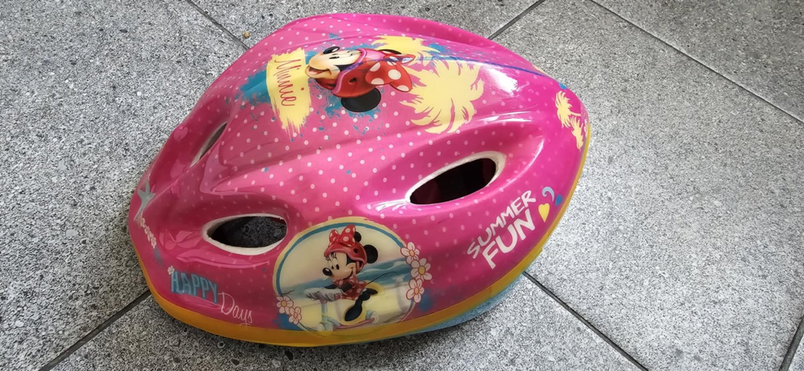 Predám zachovalé prilby s motívom Elsy, Minnie Mouse, kvietkou veľkosť M 52-56