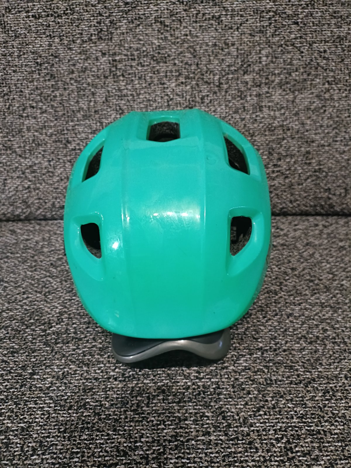 Detská zelená cyklistická prilba Kellys Acey, veľkosť S (50-55), ale podľa našej skúsenosti nositeľná od 48 do 52 cm. Nosená, ale vo veľmi peknom stave. Oškretá ani popraskaná nie je, má iba zopár ďubiek. Zvnútra v perfektnom stave.