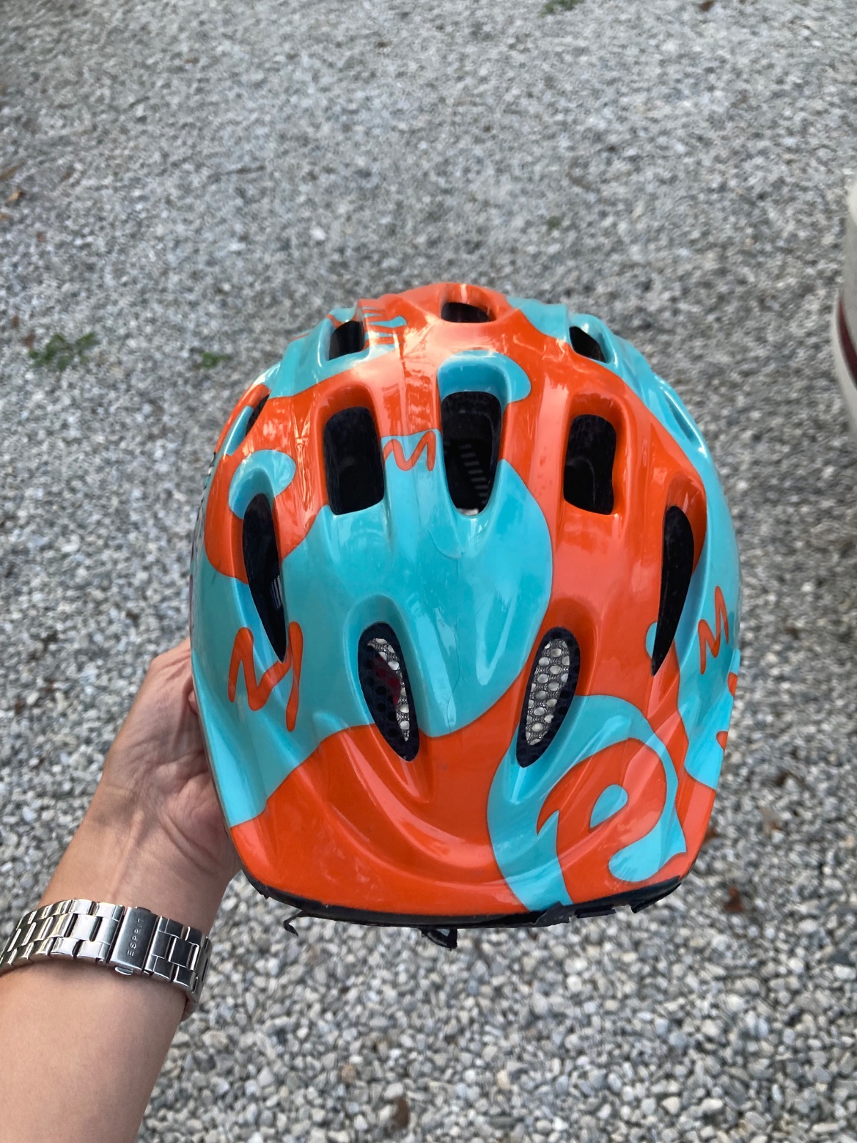Detská cyklistická prilba 6 vetracích otvorov pre optimálne prúdenie vzduchu.VLASTNOSTI:lepený vonkajší plášť na penu 6 vetracích otvorov vrátane 3 s podšívkou zo sieťoviny.systém nastaven...