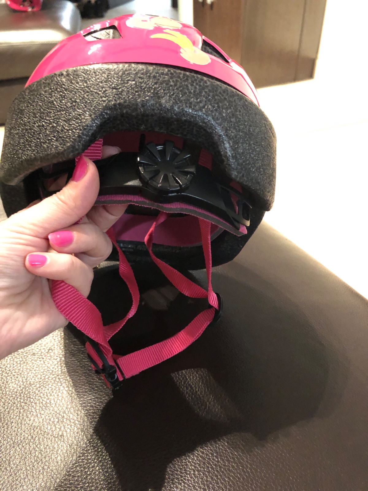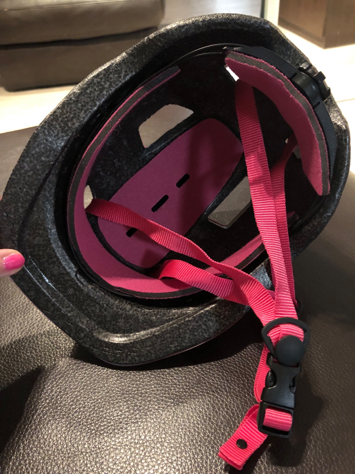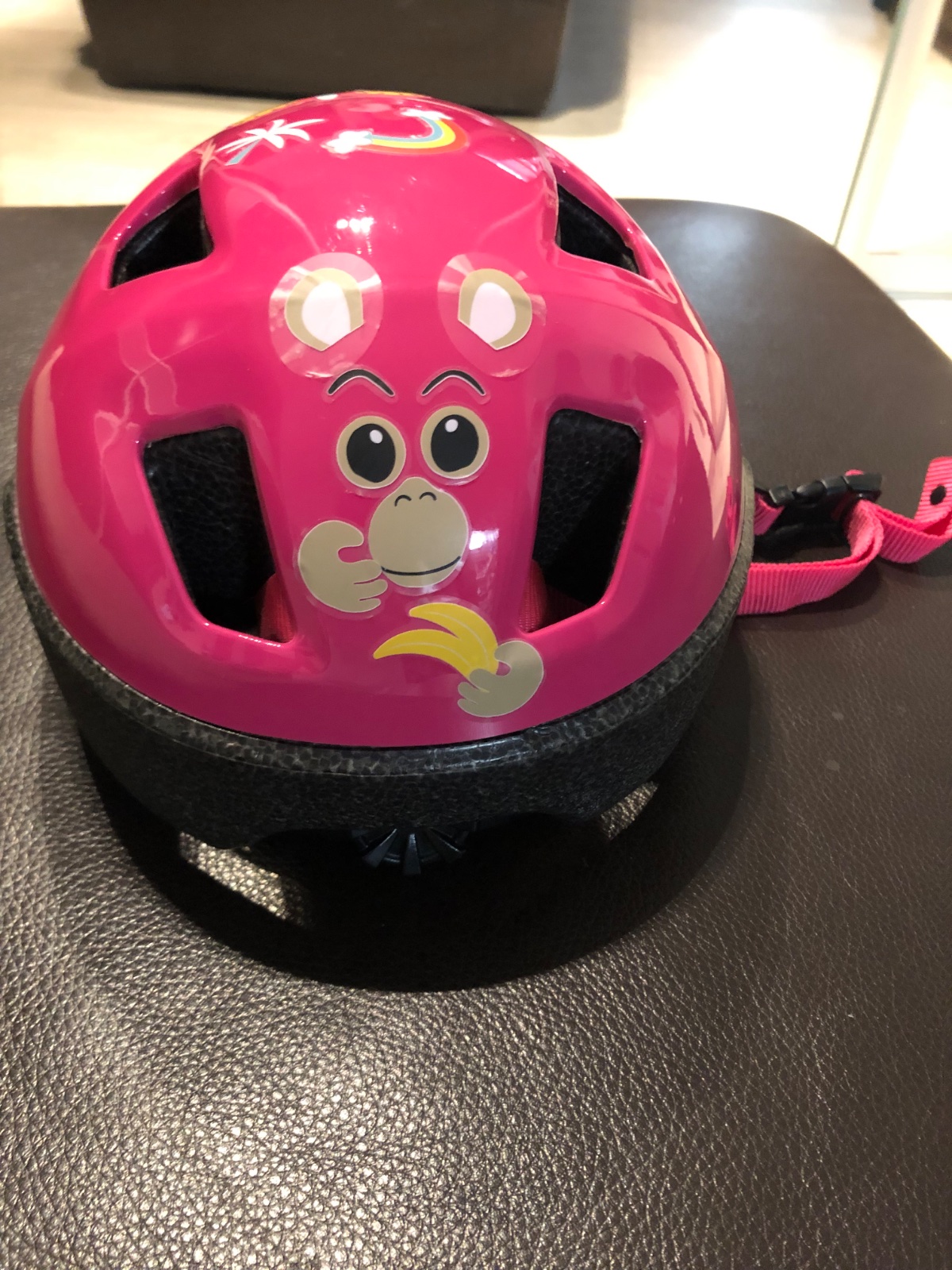 Praktická detská prilba pre dievčatká. Je sýto ružová, dcérka chcela na ňu nálepky, tak je oblepená zvieratkami. Je na vek 7-9 rokov.