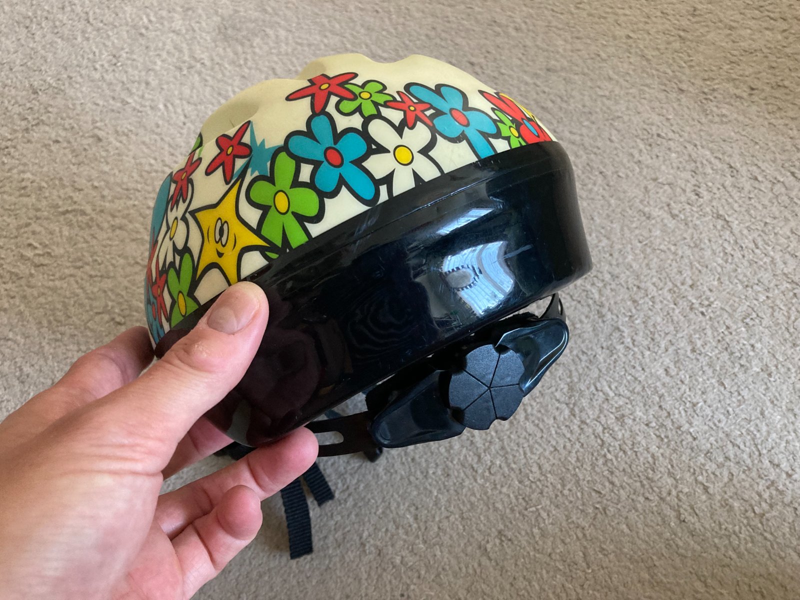 Zachovalá prilba bez poškodenia s koliečkom na prispôsobenie veľkosti. Velkost L (54-56cm)