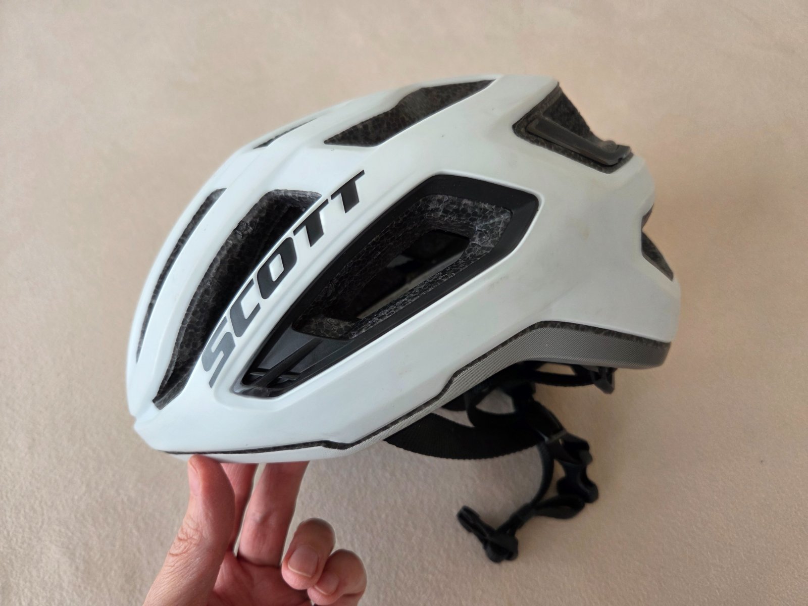 Cyklistická helma vo výbornom nosenom stave. Sedí na hlavičku približne s obvodom 51-54cm.