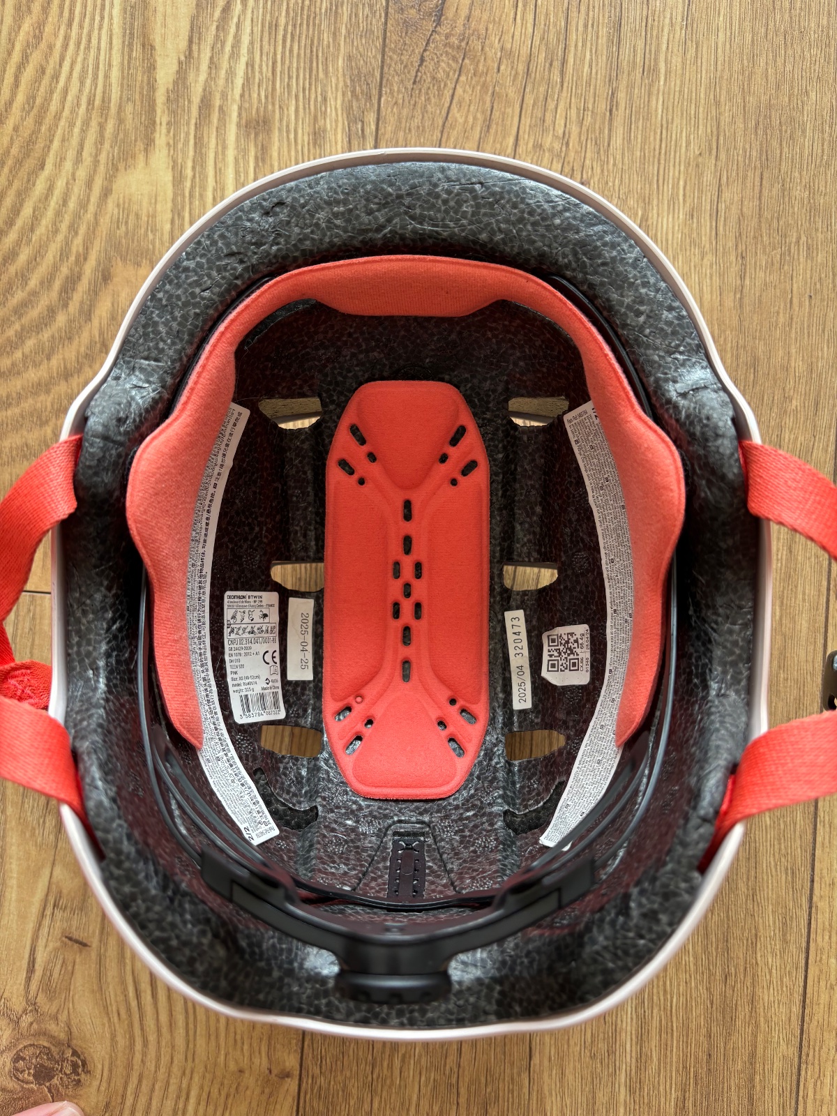 Predám detskú nosenú cyklistickú prilbu. Rúžová farba, velkosť XS. Na vrchu je trošku poškrábaná, nieje to ani vidieť ( viď foto).