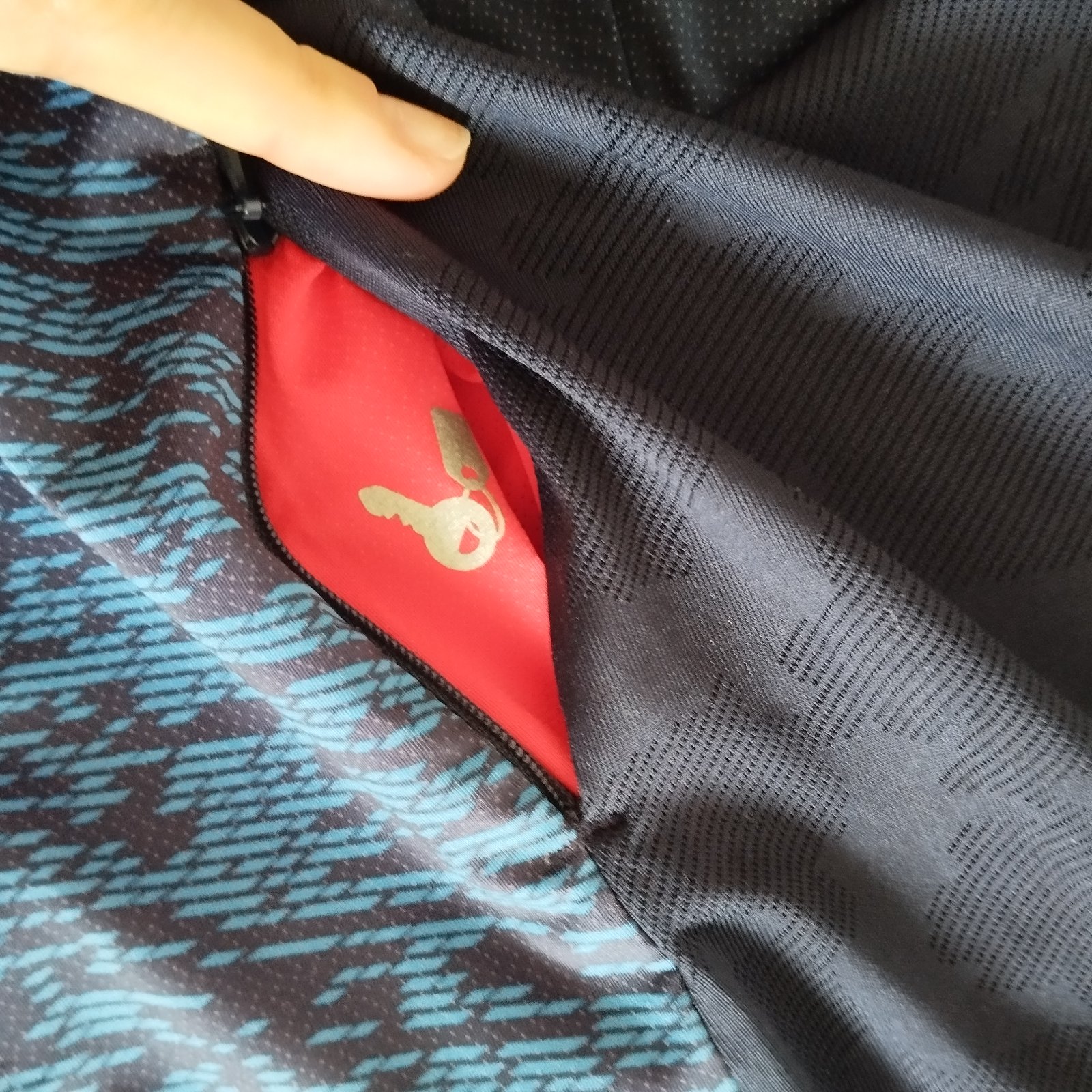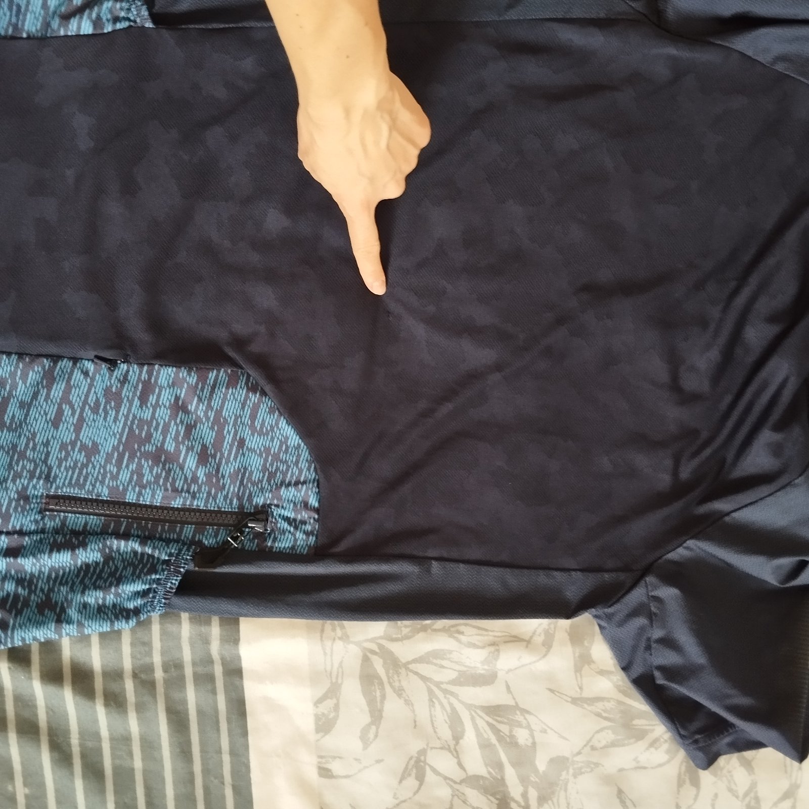 Pánsky cyklo dres Rockrider. Skvelé, má veľa vreciek, po stranách, aj vzadu na mobil a kľúče. Super stav iba jedno malé zatiahnutie na chrbte.