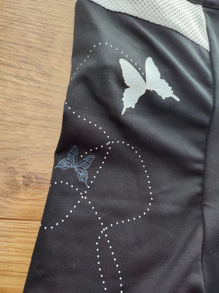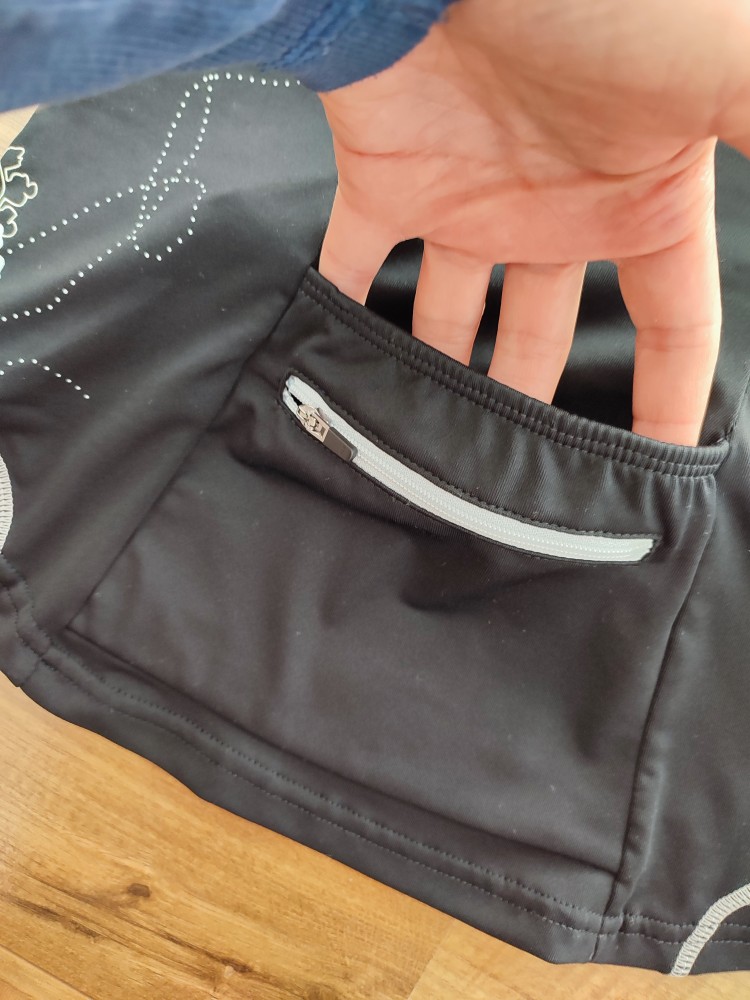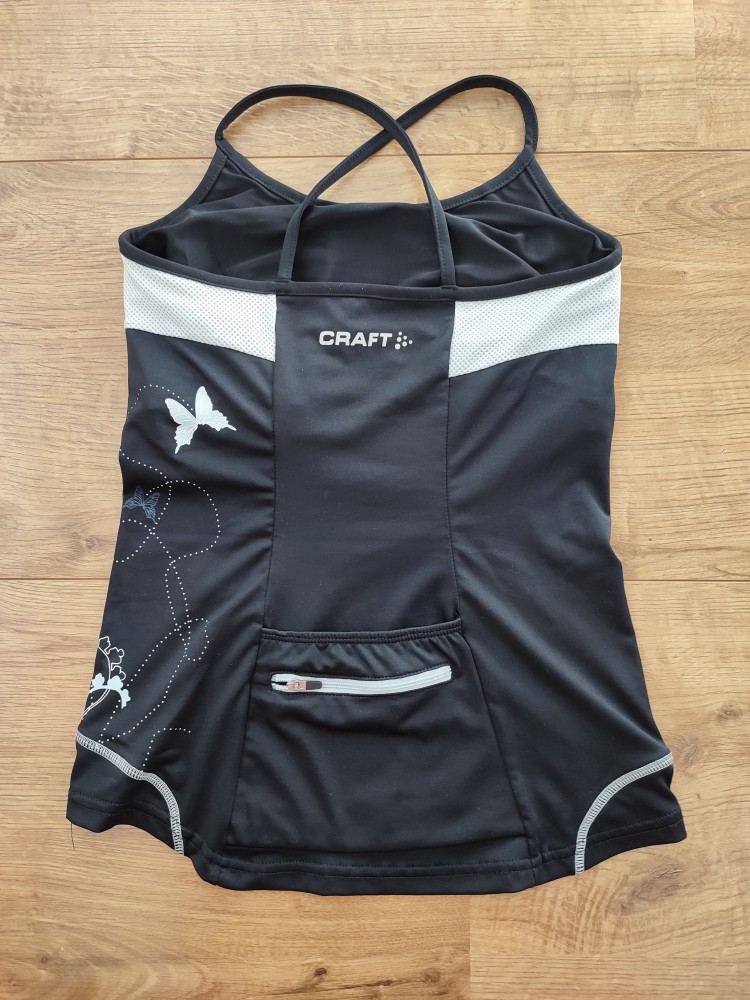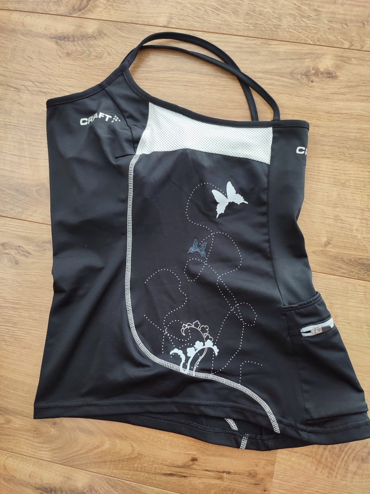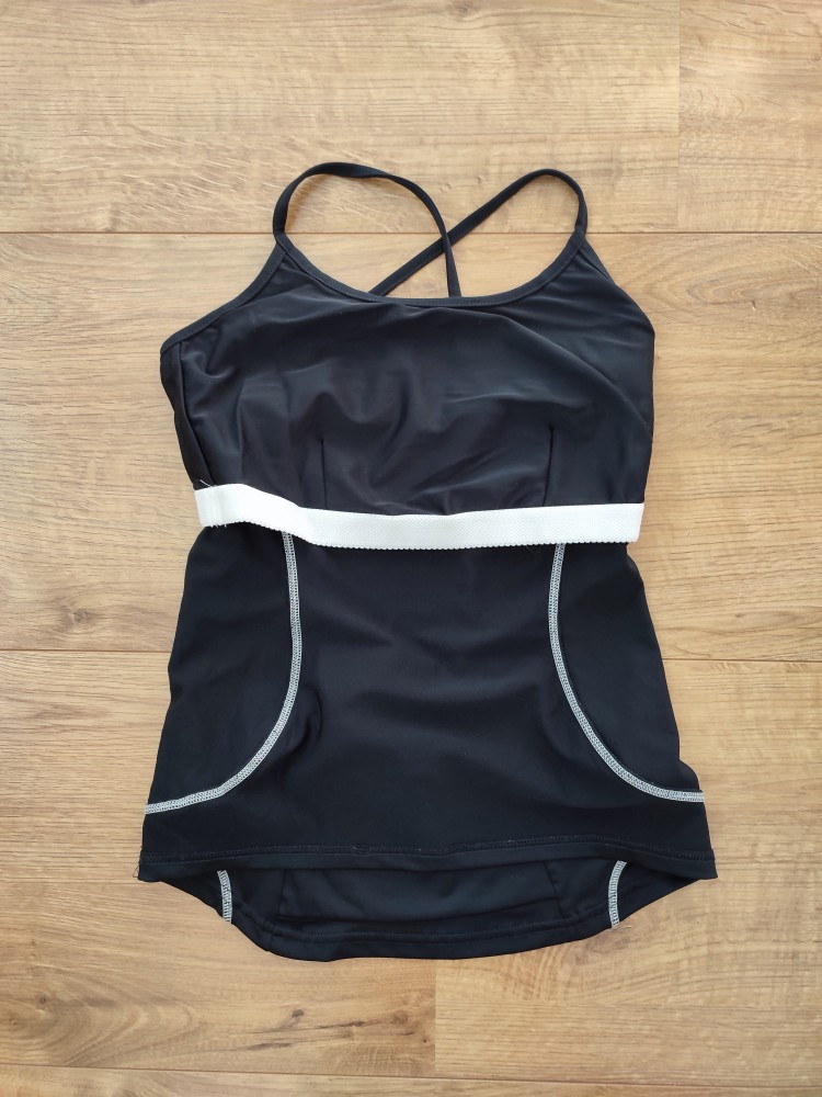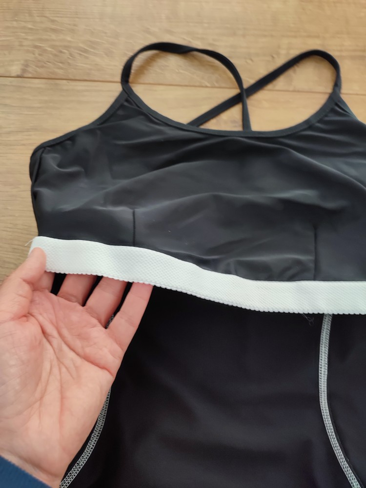 kvalitné, dobre ušité, pekný strih. všitá podprsenka, vzadu je predĺžené a má tam dve vrecká, jedno z toho na zips. nemá žiadne poškodenia.