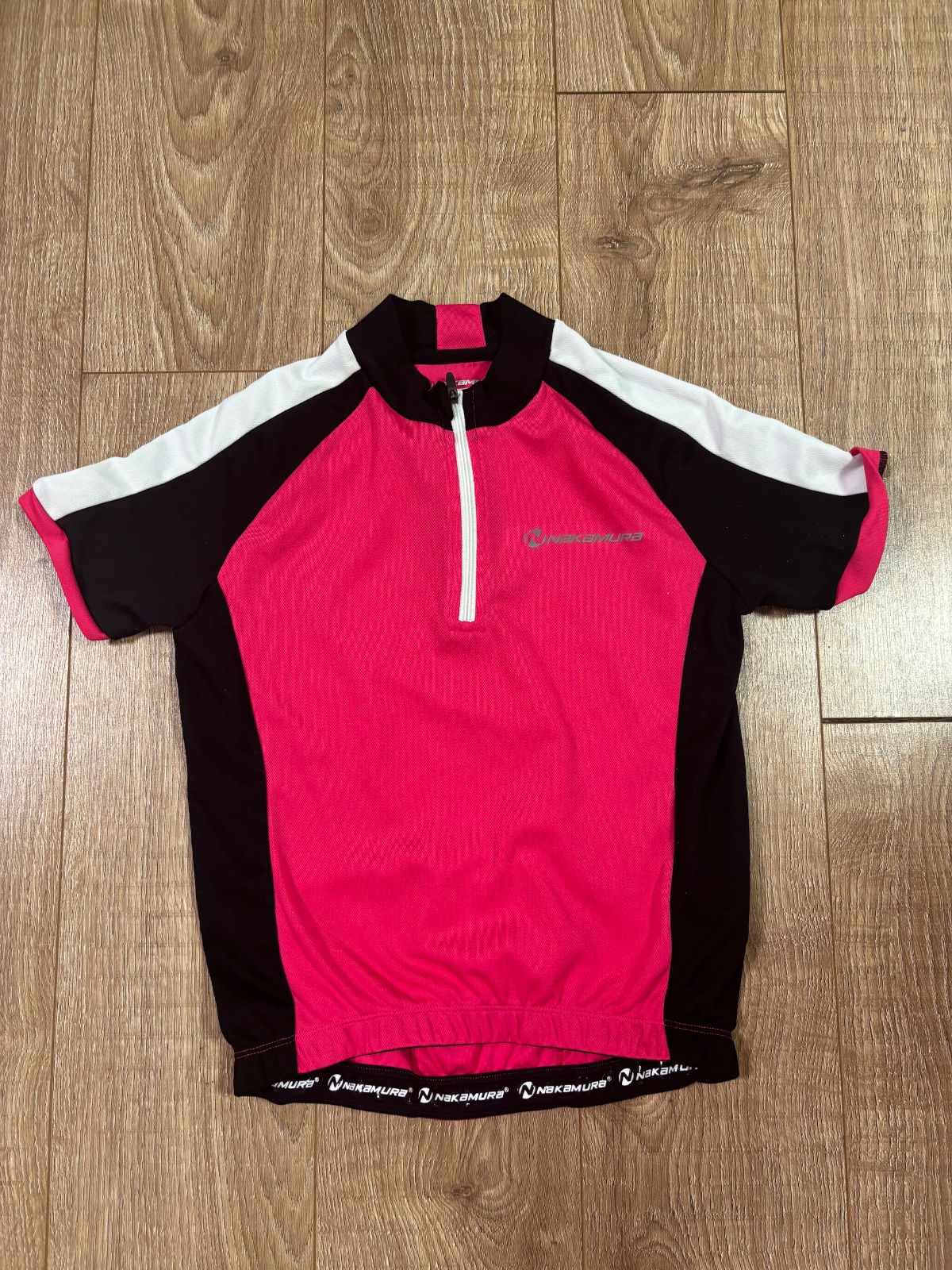 Cyklisticke tricko nakamura, velkost 140. Bez poskodeni. Ma vzadu vrecka, stojacik na zips.