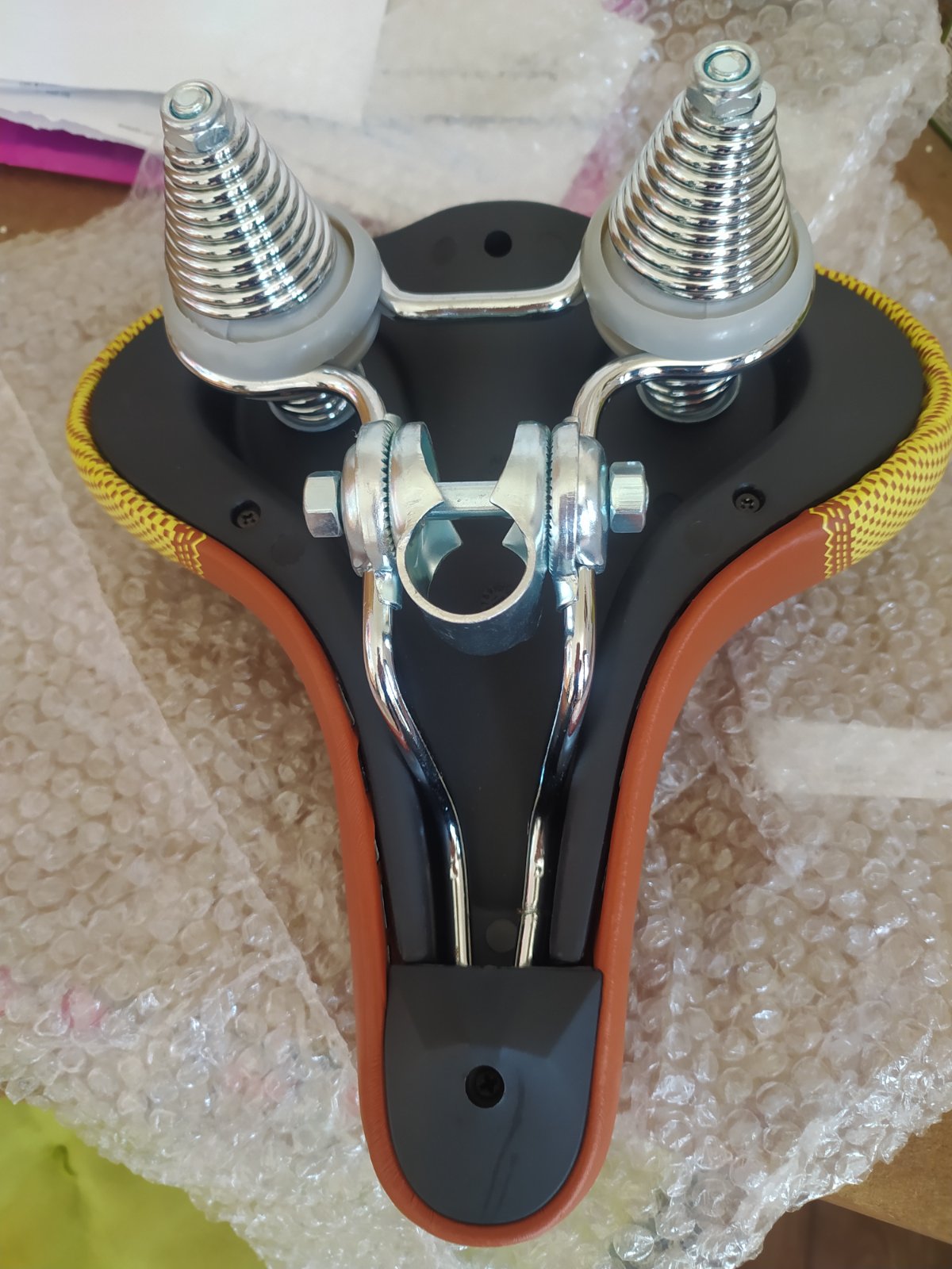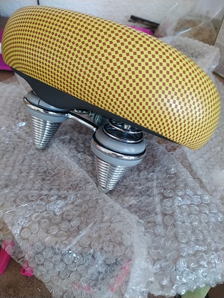 Nové sedlo s dvojitou pružinou. Široké.