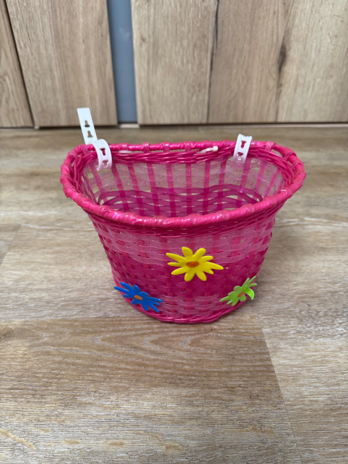 Ponúkam krásny pletený ružový košík s kvietkami pre dievčatká na bicykel, odrážadlo, kolobežku,..Bol dlhšie skladovaný ale vo výbornom stave. Rozmery viď. foto. Poštovné podľa taríf.