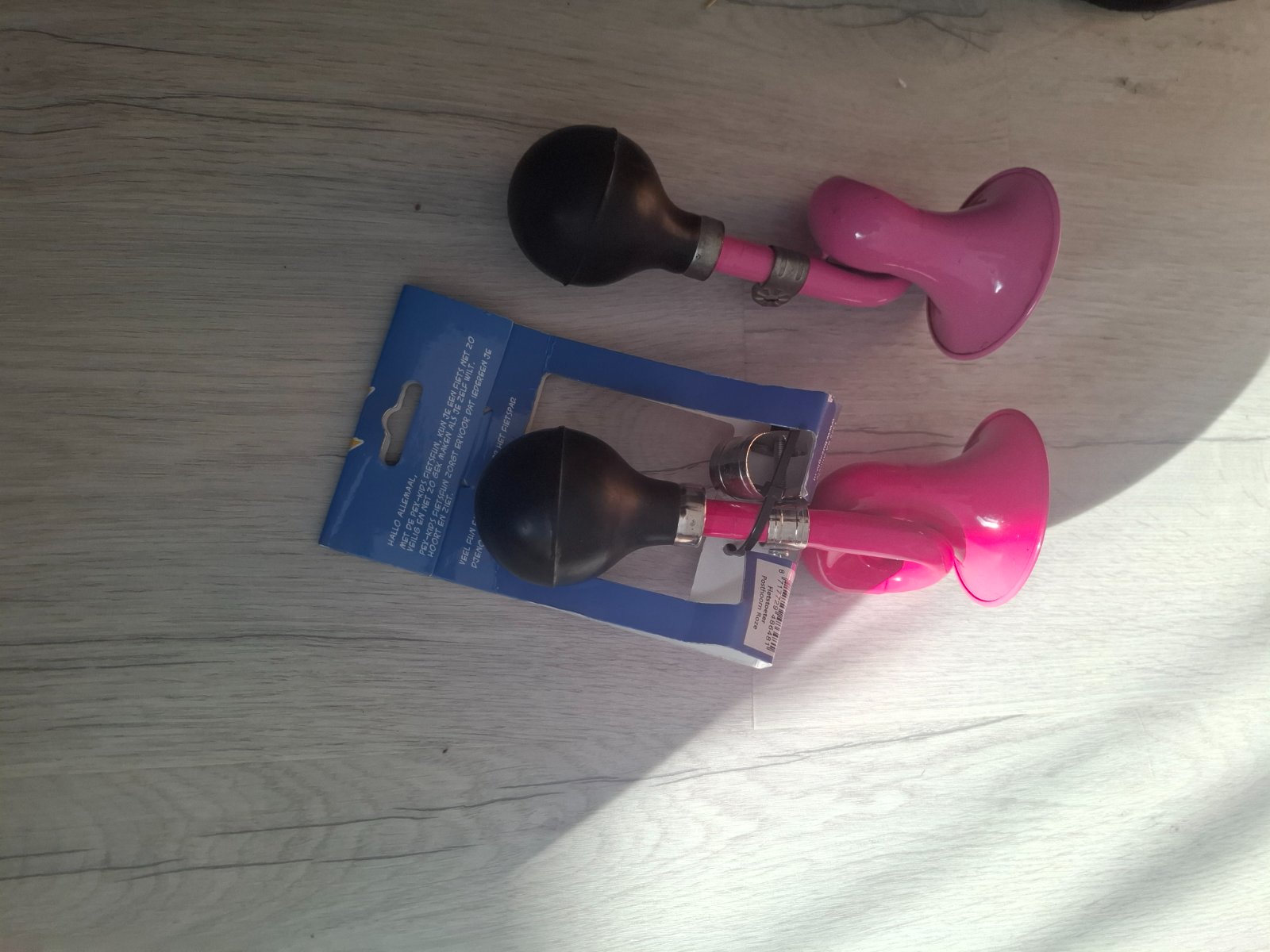 Predam klakson na bicykel. Červeny je kompletný a ružovému chýba úchytka na riaditka. Dá sa uchytiť sťahovacou páskou. Cena za oba 5e