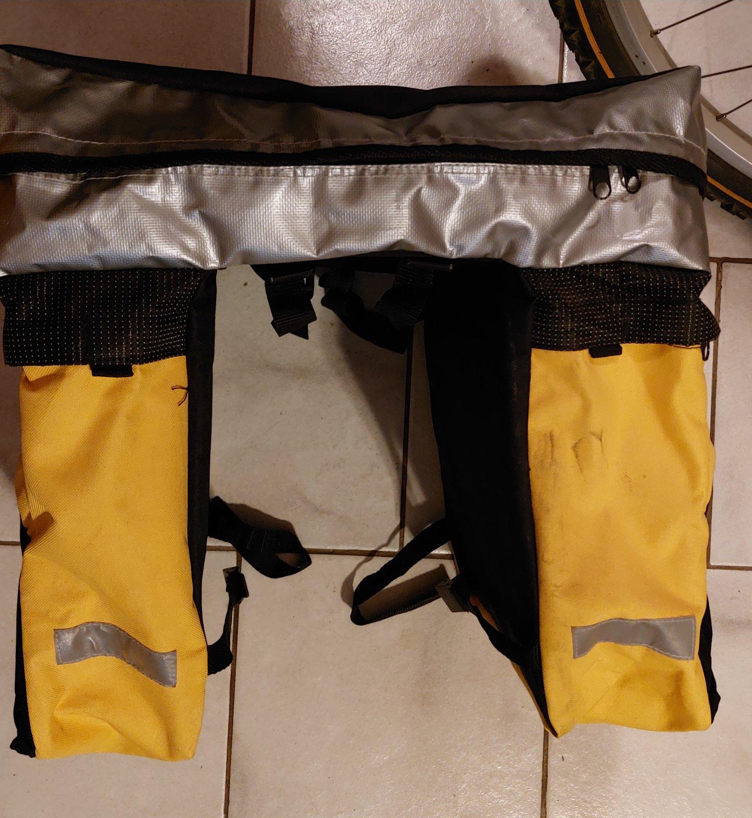 Hore priehradka na zips. Na boku 1 priehradka na zips a druha na suchý zips.