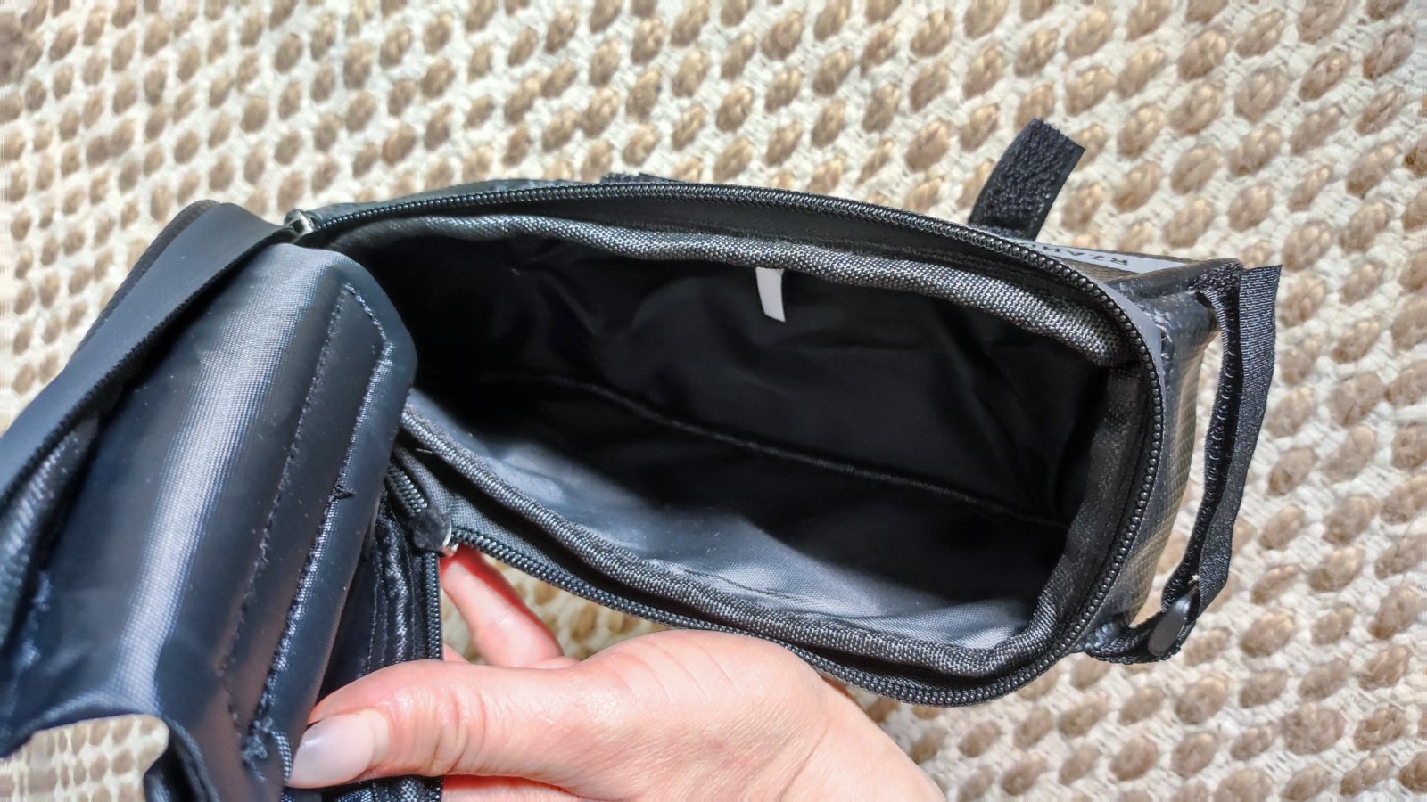 Špeciálne miesto pre telefón, aby ste ho mohli voľne používať počas jazdy ako navigáciu alebo prehrávač hudby. Telefón je pripevnený suchým zipsom v hlavnom vrecku a je viditeľný počas jazdy cez vodotesné priehľadné okienko.
