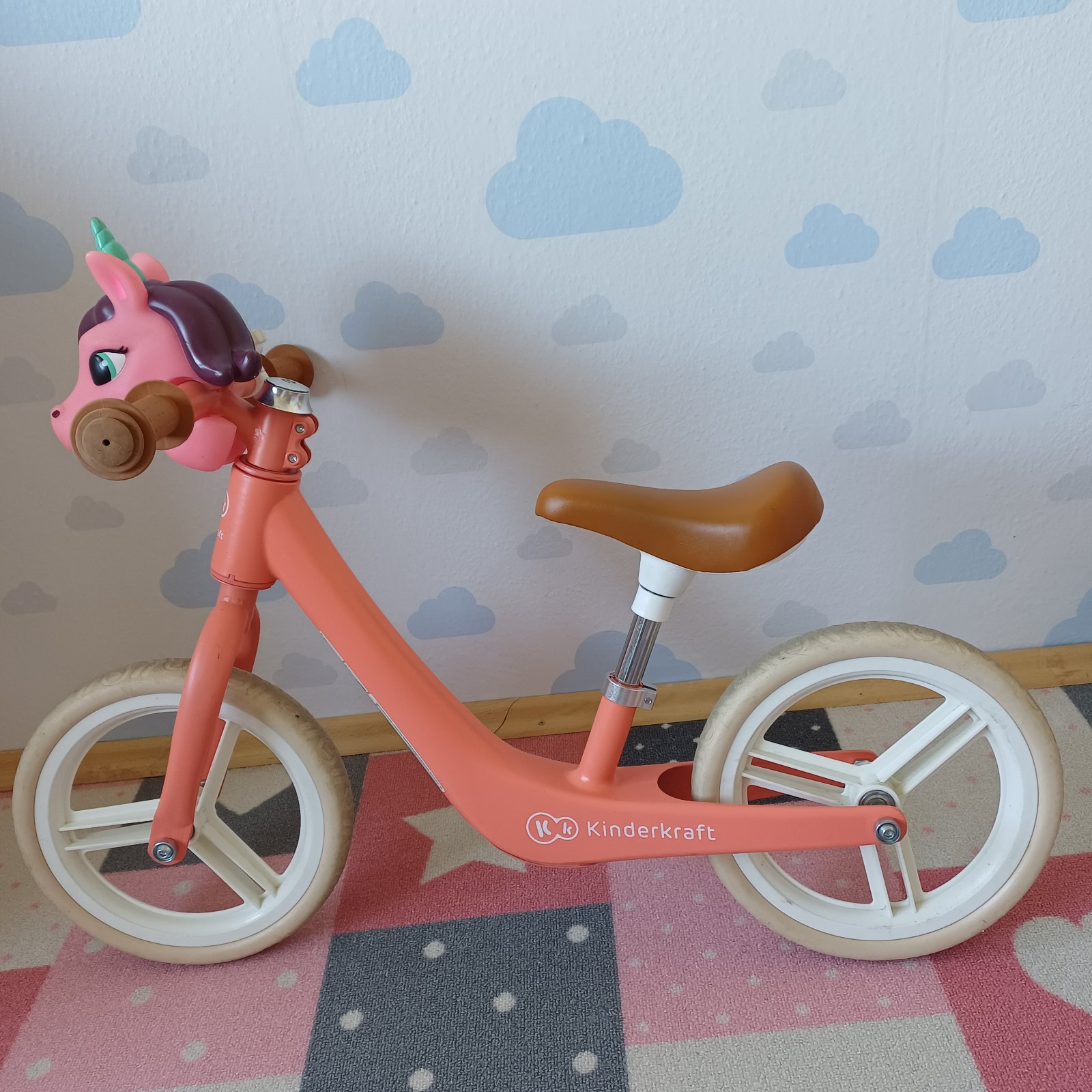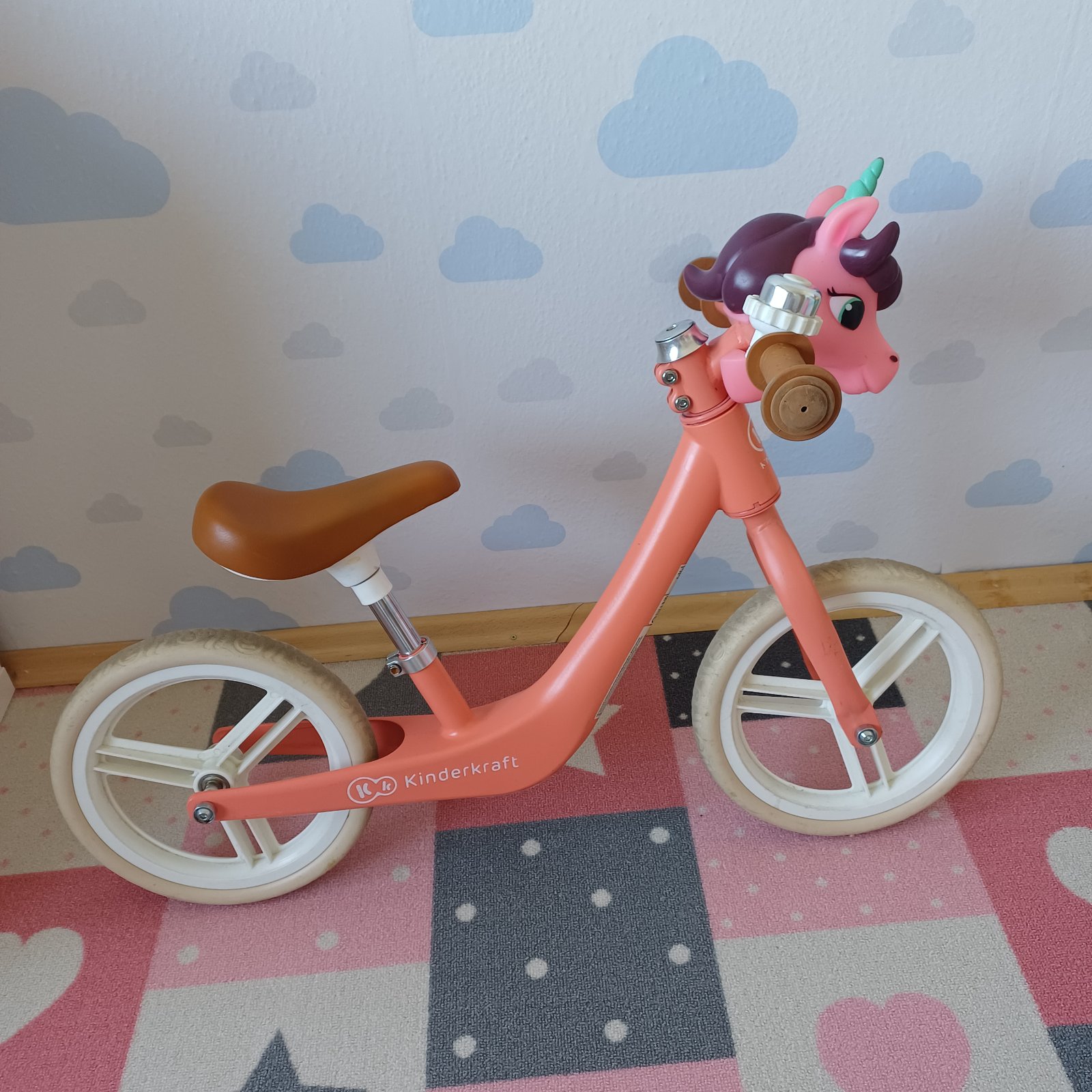Odrazadlo kinderkraft pre dievcatko v koralovej farbe. Odľahčený ram 2.8kg vyska sedu 32-42cm. Pre deti do 105cm kolesa su 12 palcove. osobny odber bb alebo br