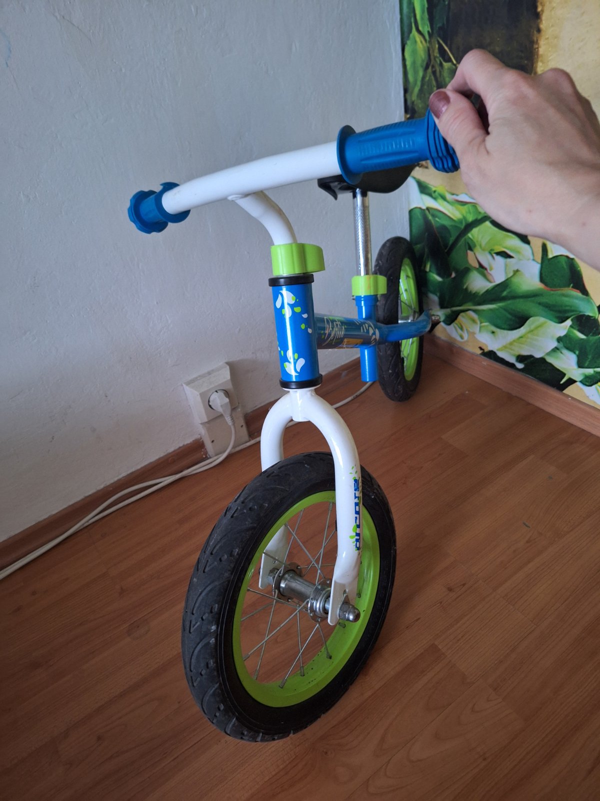V super stave. Malo syn jazdil. Je lahulinke. Netreba nafukovat gumy. Uplne prve odrazadlo pre najmansie deti. Odfotila som ho s futbalkou