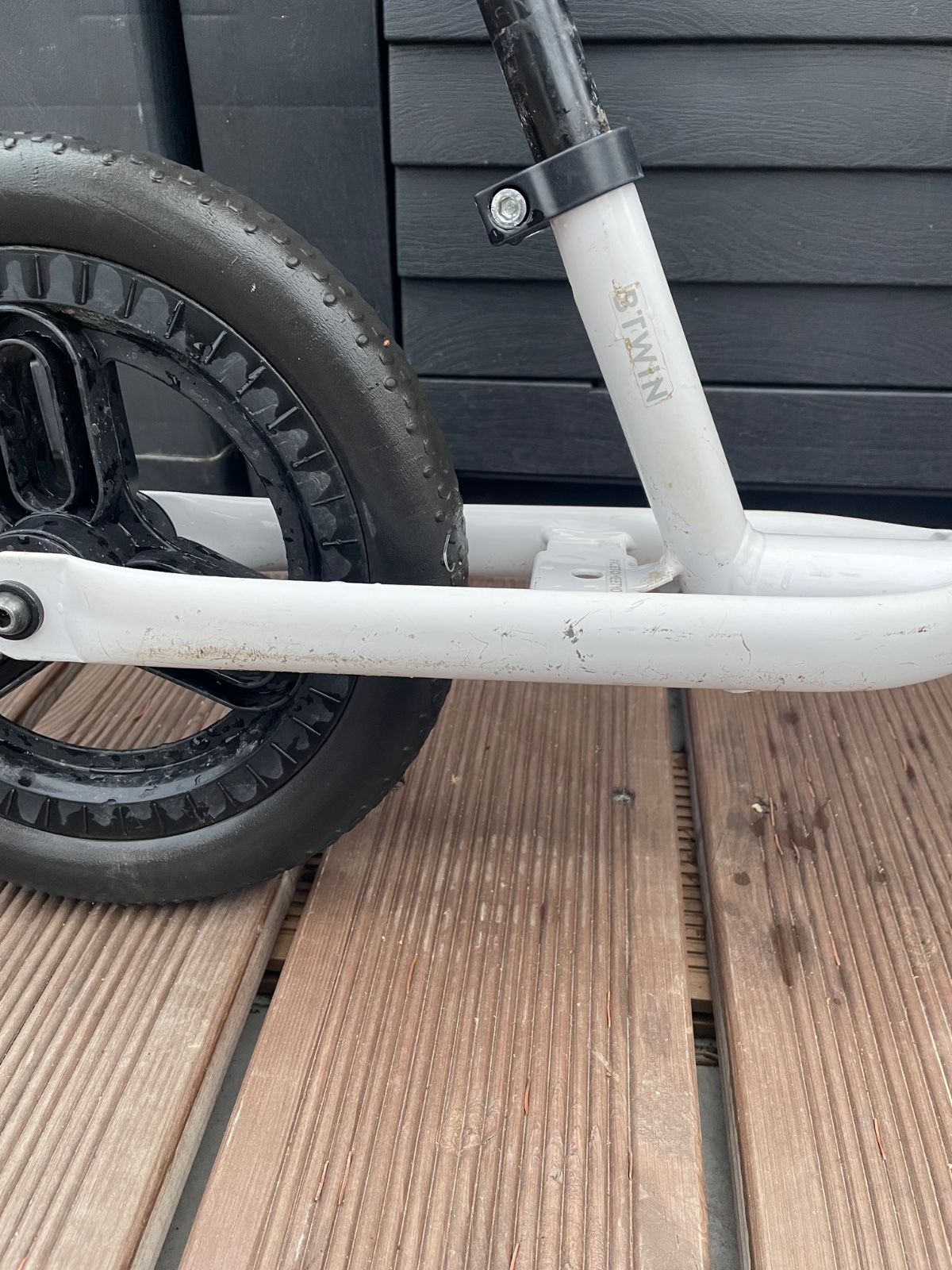 BTWIN - Detské odrážadlo 10-palcové RunRide 100 Cruise bielo-čierne, pre deti od 2 do 4,5 roka (85 -105 cm). V Super stave mierne znamky použitia.