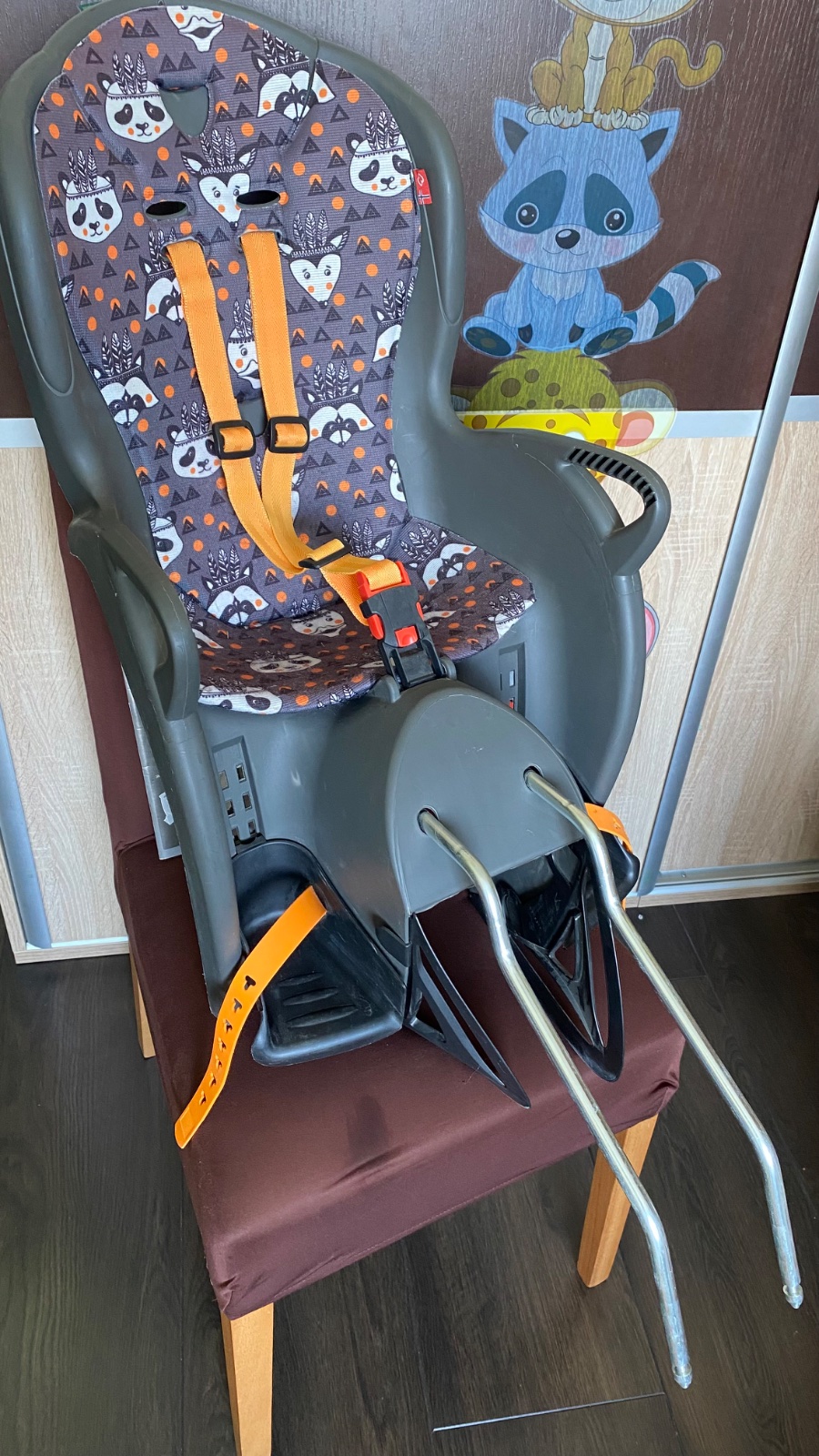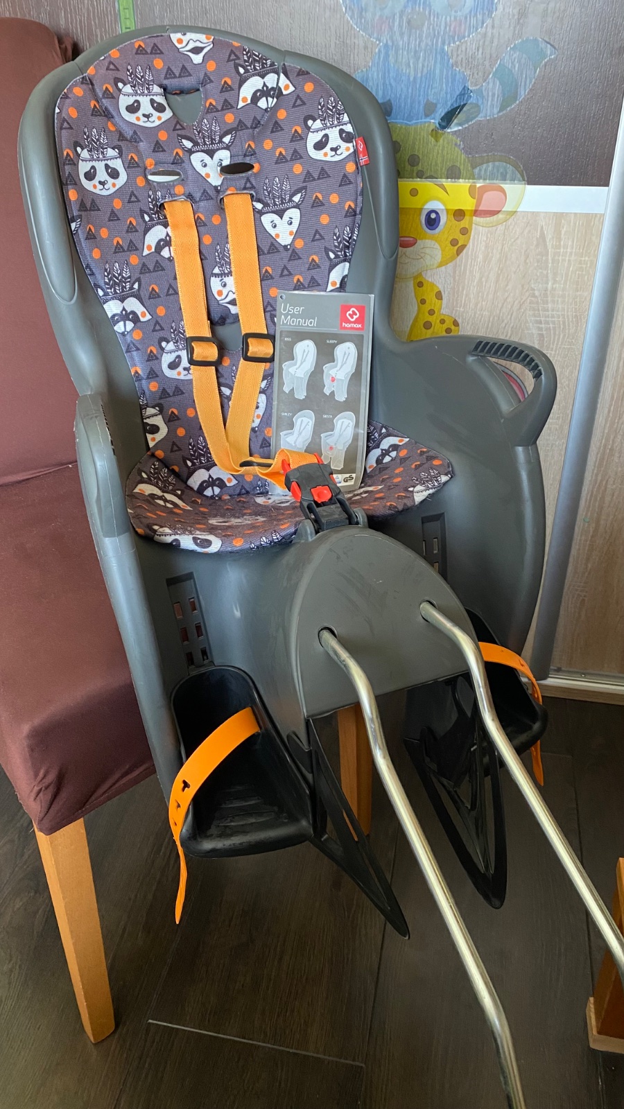 určená pre montáž na sedlovú trubkumontáž na oceľovú lyžinu, zabezpečuje priženie a komfort pre dieťanastaviteľné opierky nôh a ochrana pred rotujúcim kolesom ergonomická a komfortná vhodná pre deti od 9 mesiacov (vie udržať hlavu vzpriamenú), s hmotnosťou do 22 kg, vhodná na priemer rámu 28 - 40 mm, jednoduchá montáž
