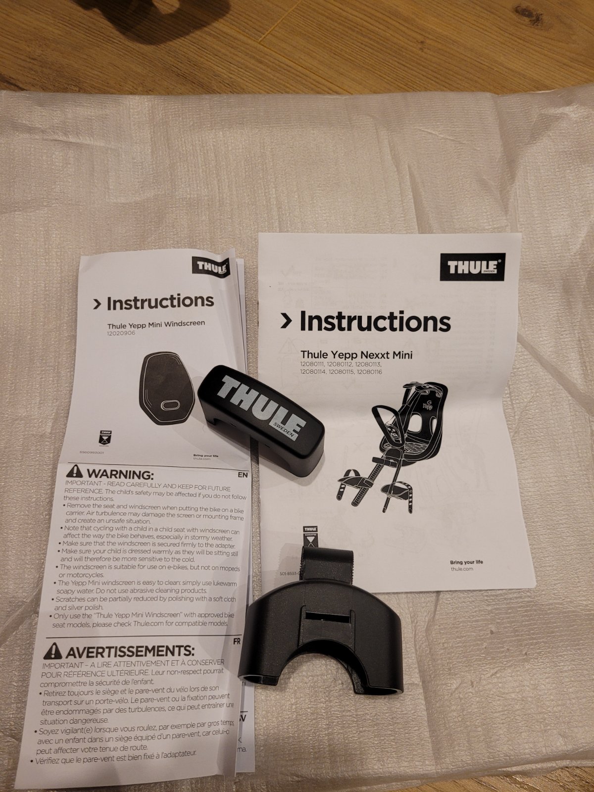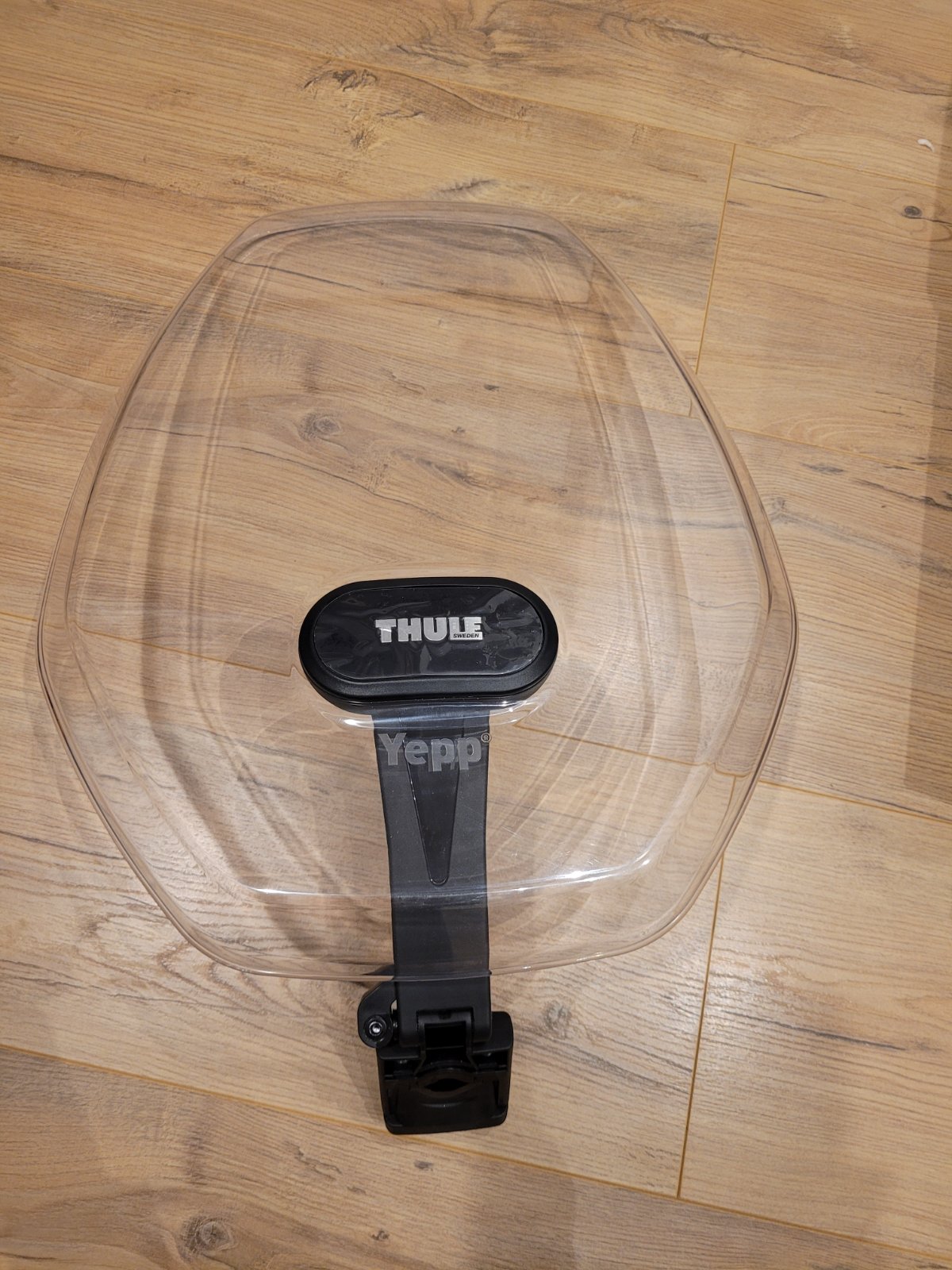 K cyklosedačke v cene ponúkam aj priehľadné čelné sklo - ochranu proti vetru Thule Yepp mini windscreen (viď foto).