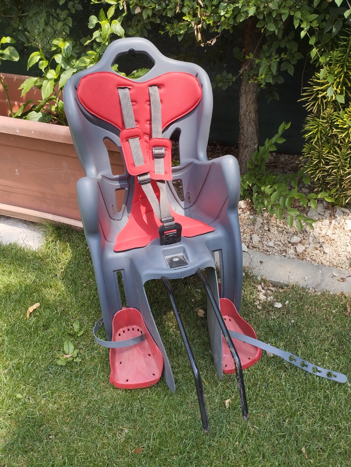 Používaná cyklosedacka , nosnosť do 25kg. Bezpečnostný pas , nastaviteľné opierky na nohy .