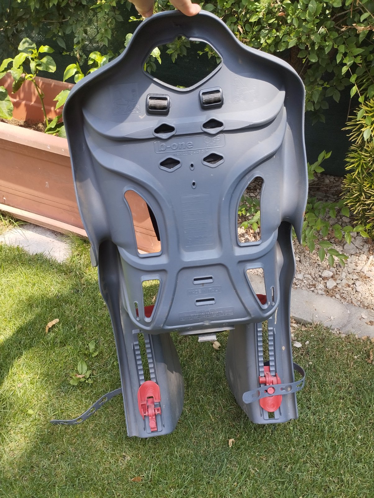 Pohodlná detská cyklosedačka polisport s bezpečnostným upevnením, nastaviteľná výška nôh. Bez poškodení po jednom dieťati používaná .Nosnosť 22kg.