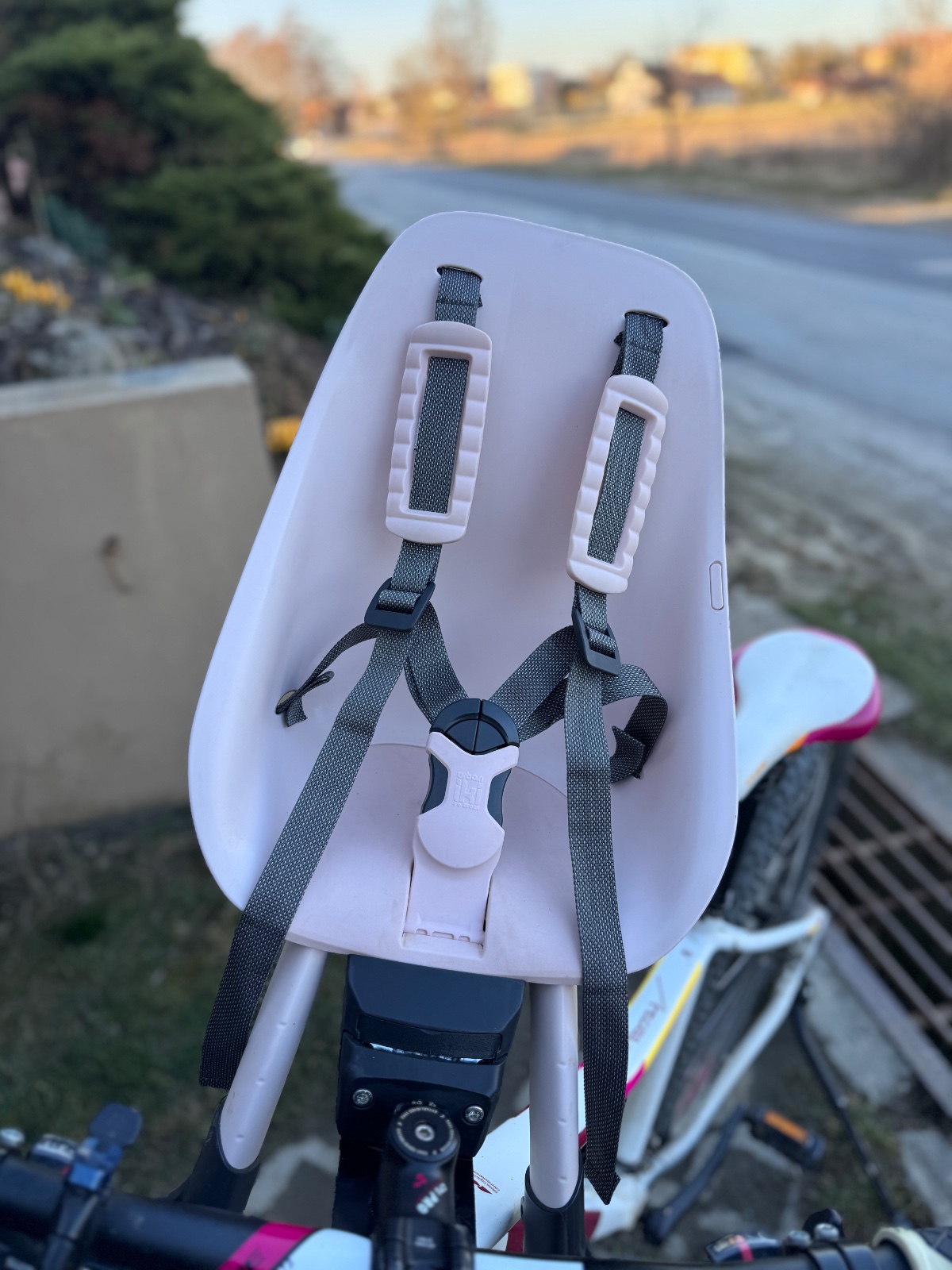 Predná cyklosedačka farba Sakura ružová, nosnosť 9-15kg, stav ako nová nám veľmi dobre poslúžila avšak už skrz nosnosť musíme prejsť na zadnú cyklosedačku,