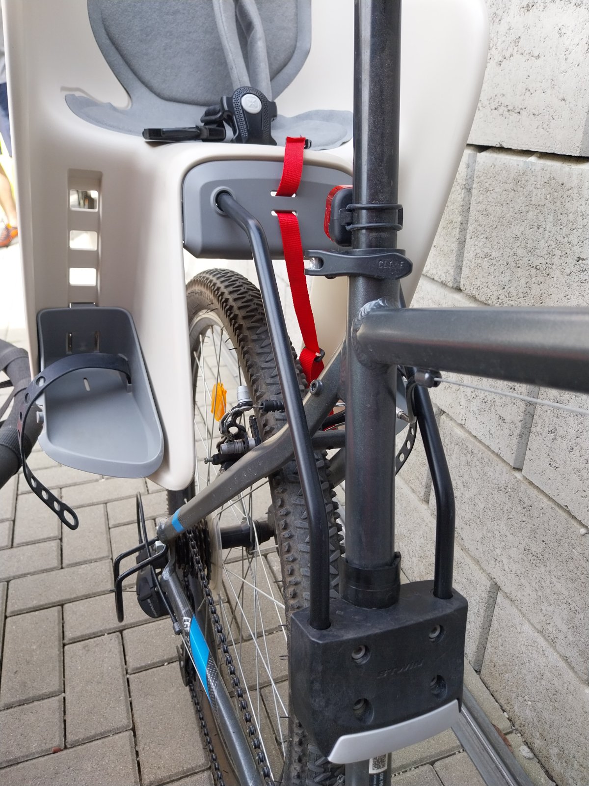 Cyklosedacka sa montuje na rám bicykla, vidno na fotkách. Používali sme ju s pánskym Rockriderom z Decathlonu. Super stav
