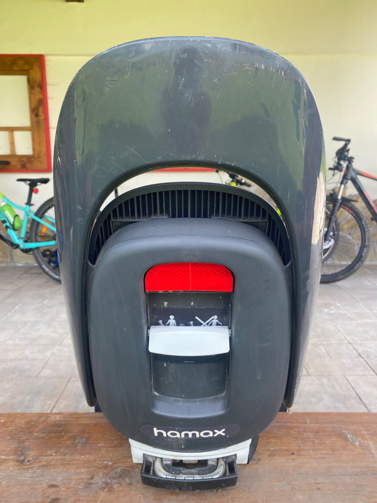 Kvalitna cyklosedacka Hamax, s nastavitelnou vyskou opierky a remien. Sedacka je uzamykatelna