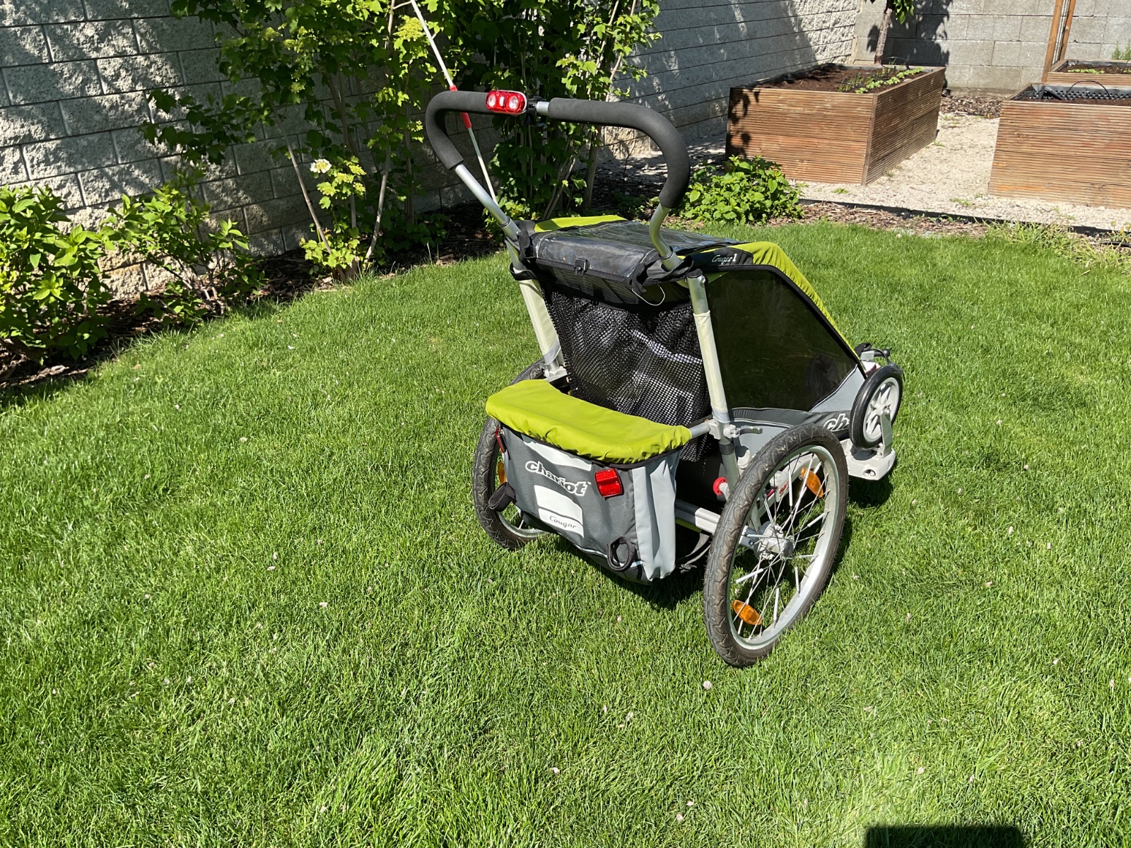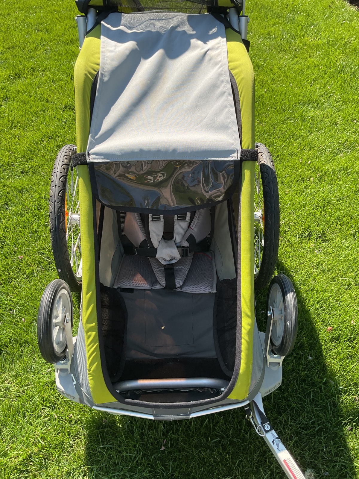 Cyklovozik CHARIOT COUGAR 1. V komplekte je BABYSET (od jedného roku deťaťa) a kočikový set ( predne kolieska, vozík sa da použiť ako kočík). Malo používaný, bez poškodenie.