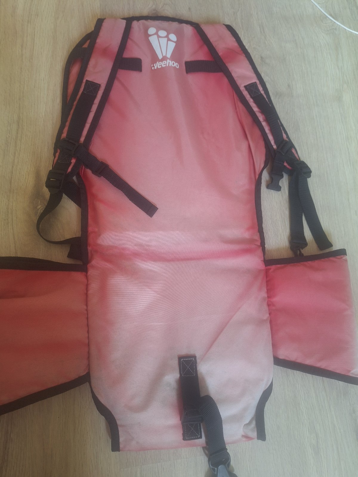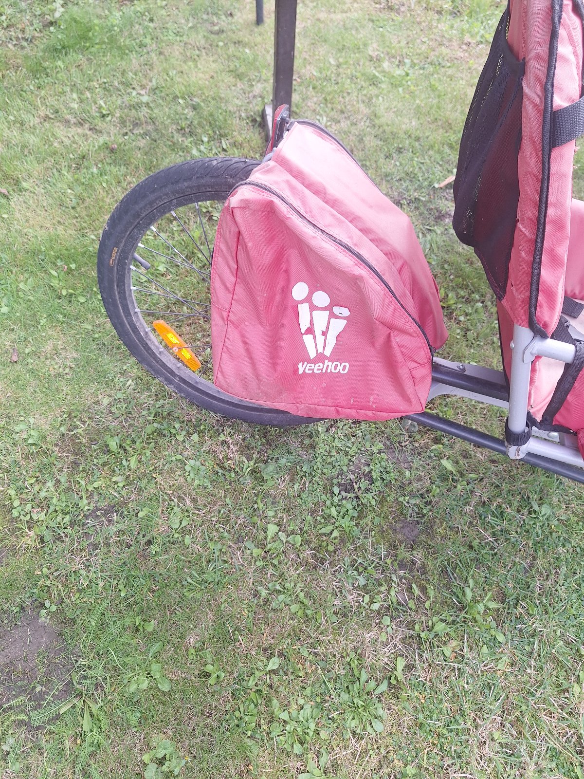 Vozík bol používaný 3 roky, poťah je už vyblednutý, logo popraskané, na funkčnosti to však nič nemení.