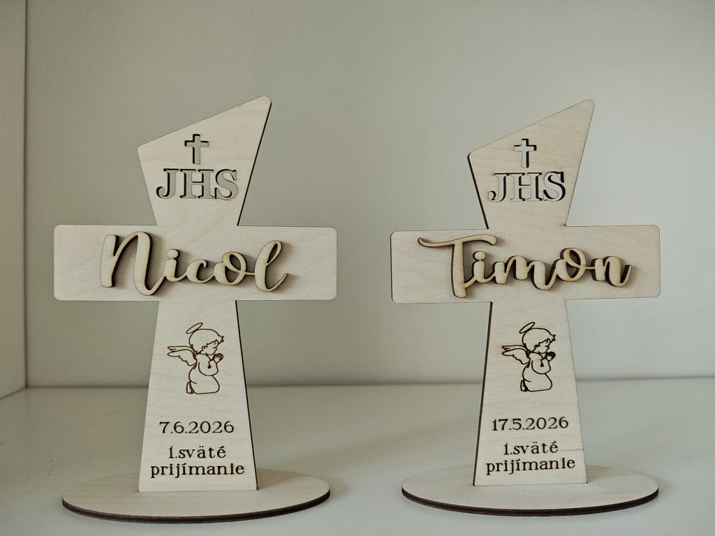 Krížik vyrobený z brezovej preglejky slúži ako milá pripomienka prijatia tejto sviatosti.
