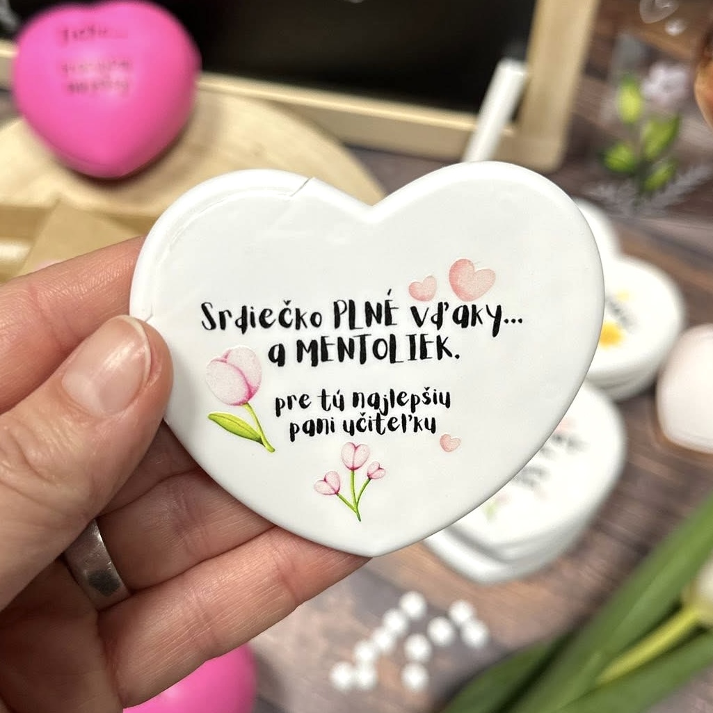 Každá pani učiteľka si zaslúži malé potešenie a ešte menšie osvieženie. Naše mentolky v srdcovom obale sú presne to sladké, osviežujúce a navyše milé ako pohladenie po náročnom dni. Perfektný darček na deň učiteľov, na koniec školského roka či meninám.