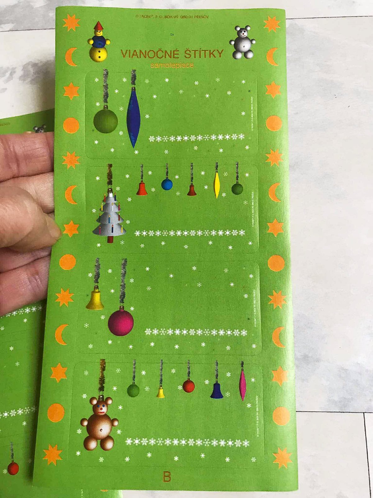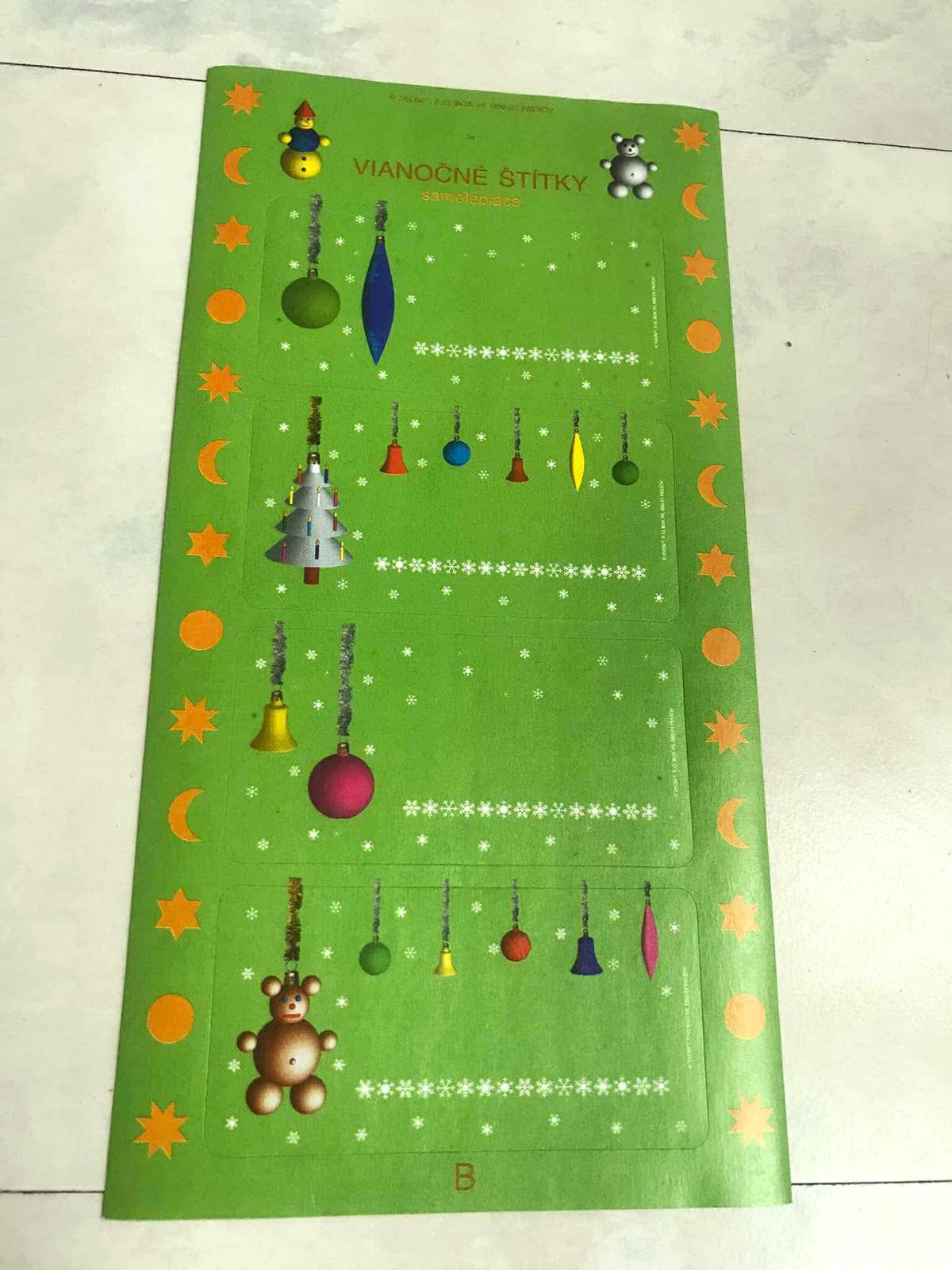 zbytok balenia ozdobných štítkov - samolepiek na označovanie darčekov,