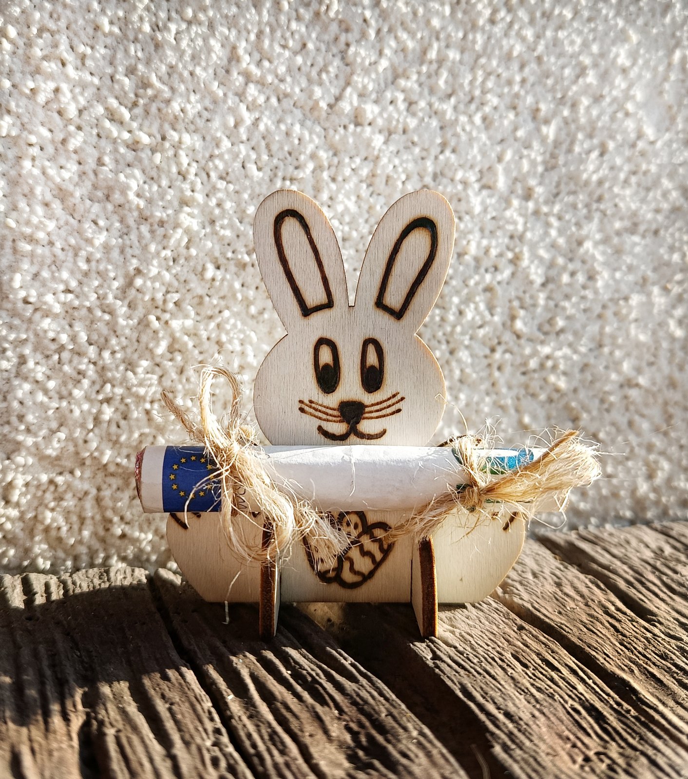 Zajko s odmenou pre šibačov. Šibač sa nebude tešiť len z € ale aj zo zajka , ktorého si môže sám vyfarbiť. ( Fixi nie su súčasťou balenia) . Predáva sa len vypálený zajko, bez vymaľovania.