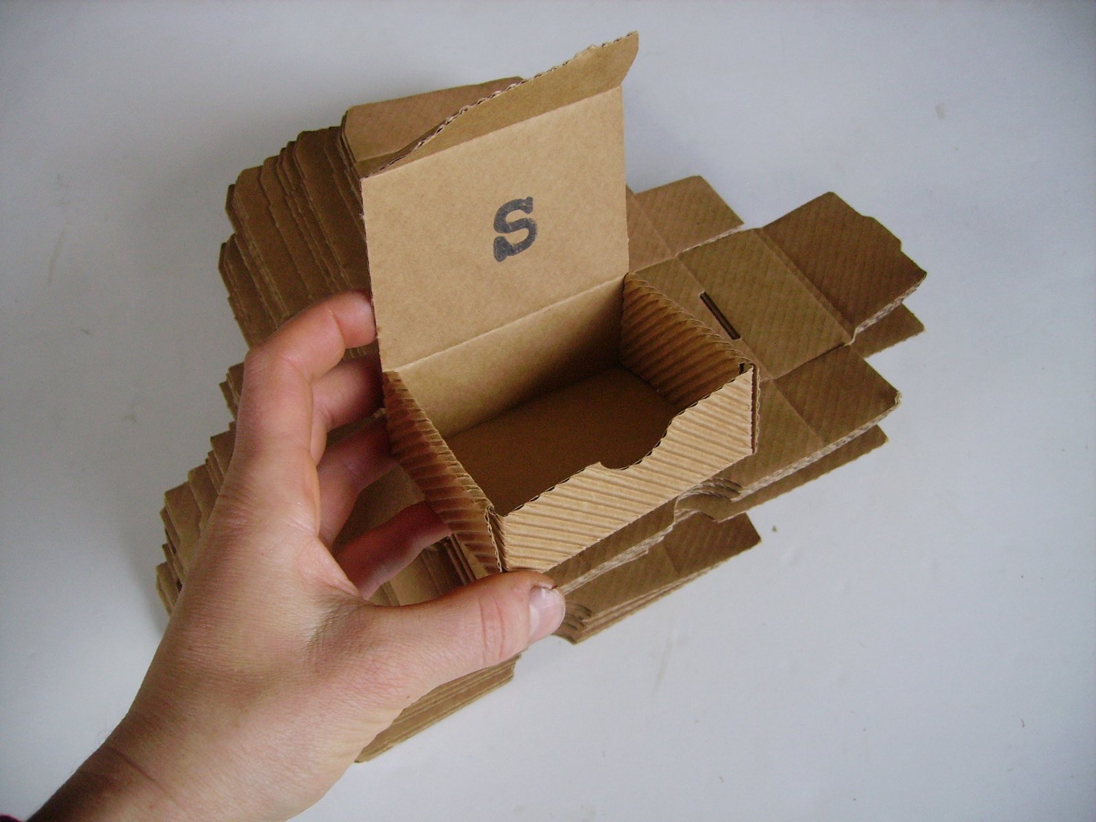SkladomPredám papierové skladacie škatuľky / krabičky z prírodnej hnedej recyklovanej dvojvrstvovej vlnitej lepenky (2VL). Mala som ich na balenie drobnôstok a zvýšili sa mi. Sú to výseky, teda je potrebné si ich zložiť. Plus prelepiť moju značku nejakou milou nálepkou (srdiečkom, smajlíkom, štvorlístkom a pod.), svojim logom, označením "hand made", kontaktnými údajmi a i. Je to tak na každej škatuľke na vnútornej strane veka. Vlnitá lepenka je zvonka, zvnútra je hladká. Škatuľka je určená na balenie ľahších vecičiek (napr. šperky, cukrovinky, magnetky, ozdoby rôzneho druhu,...).