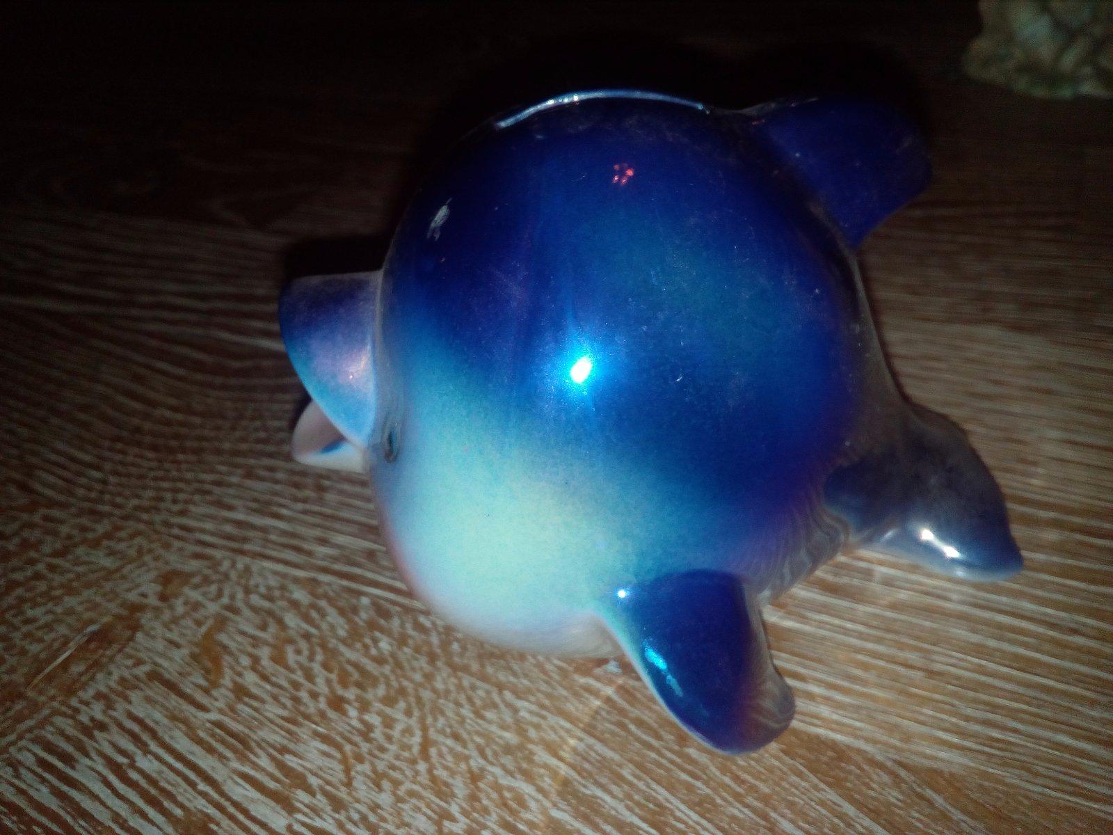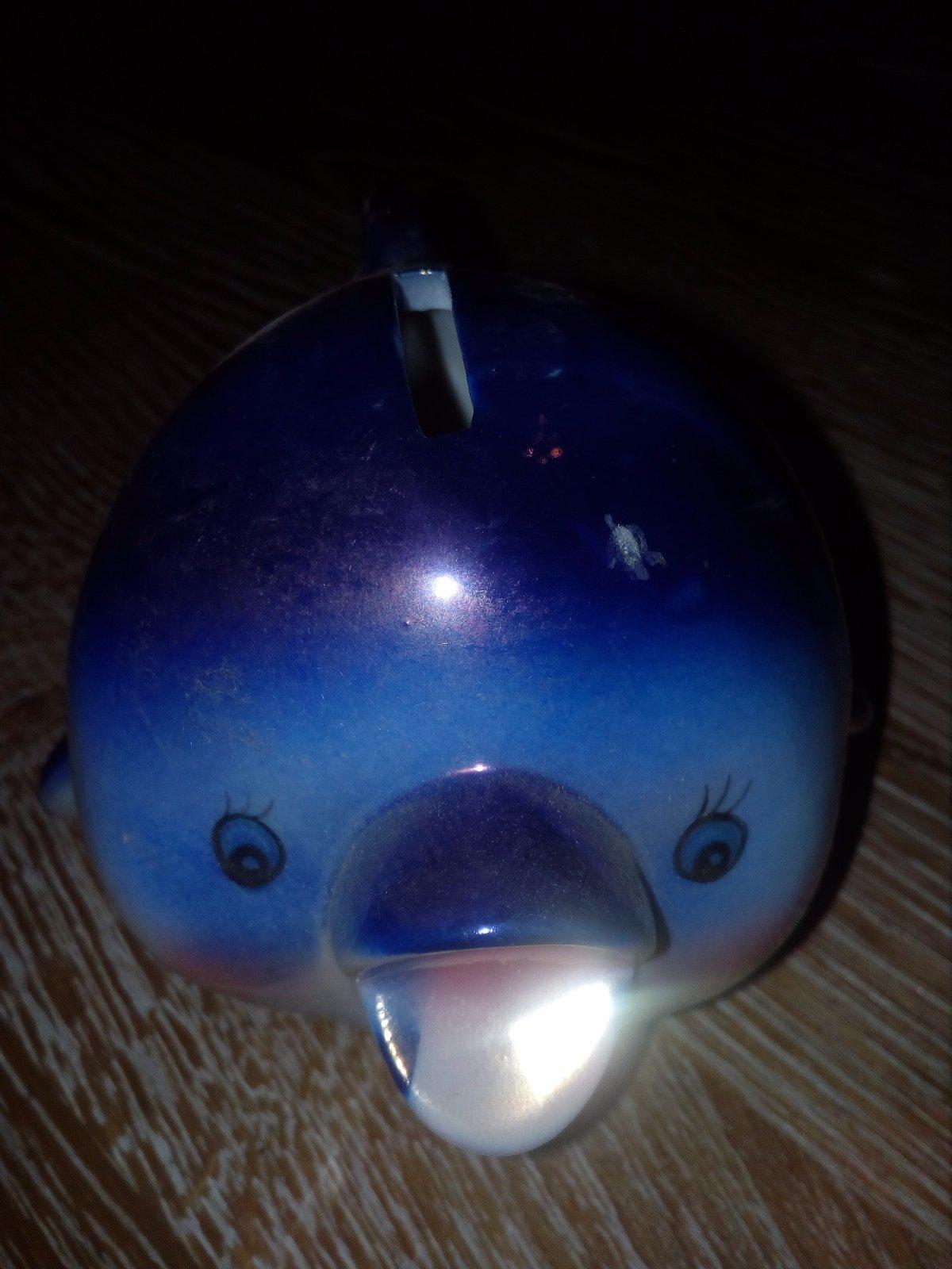 Predam tuto pokladničku, delfina, peniažky sa daju zdola vyberat. Vyșka 8cm, dlžka 11cm. Material keramika. Cena 1€+ pošta.