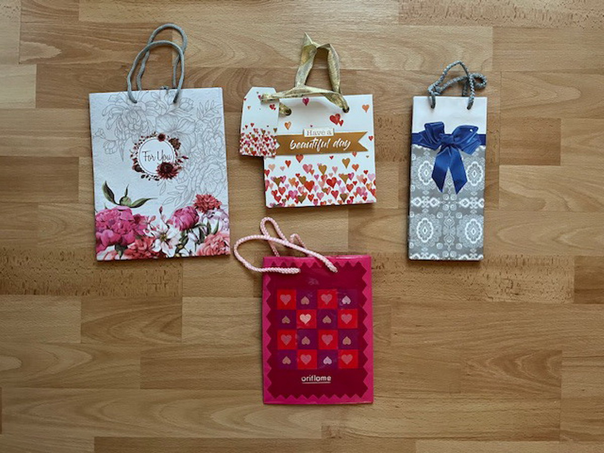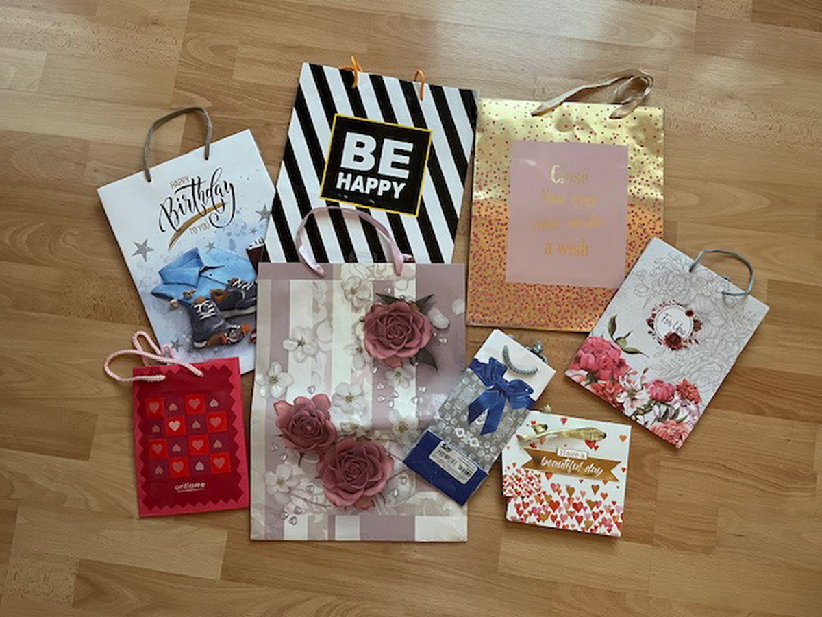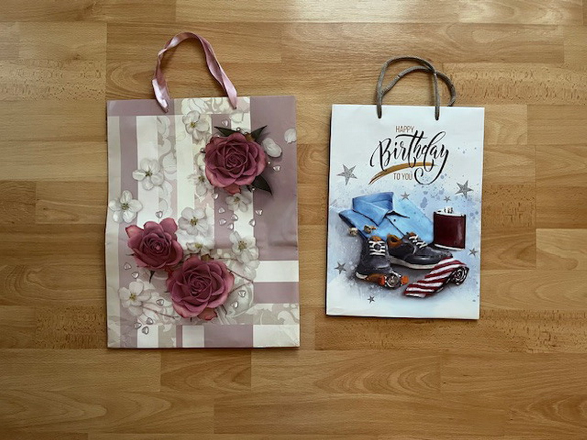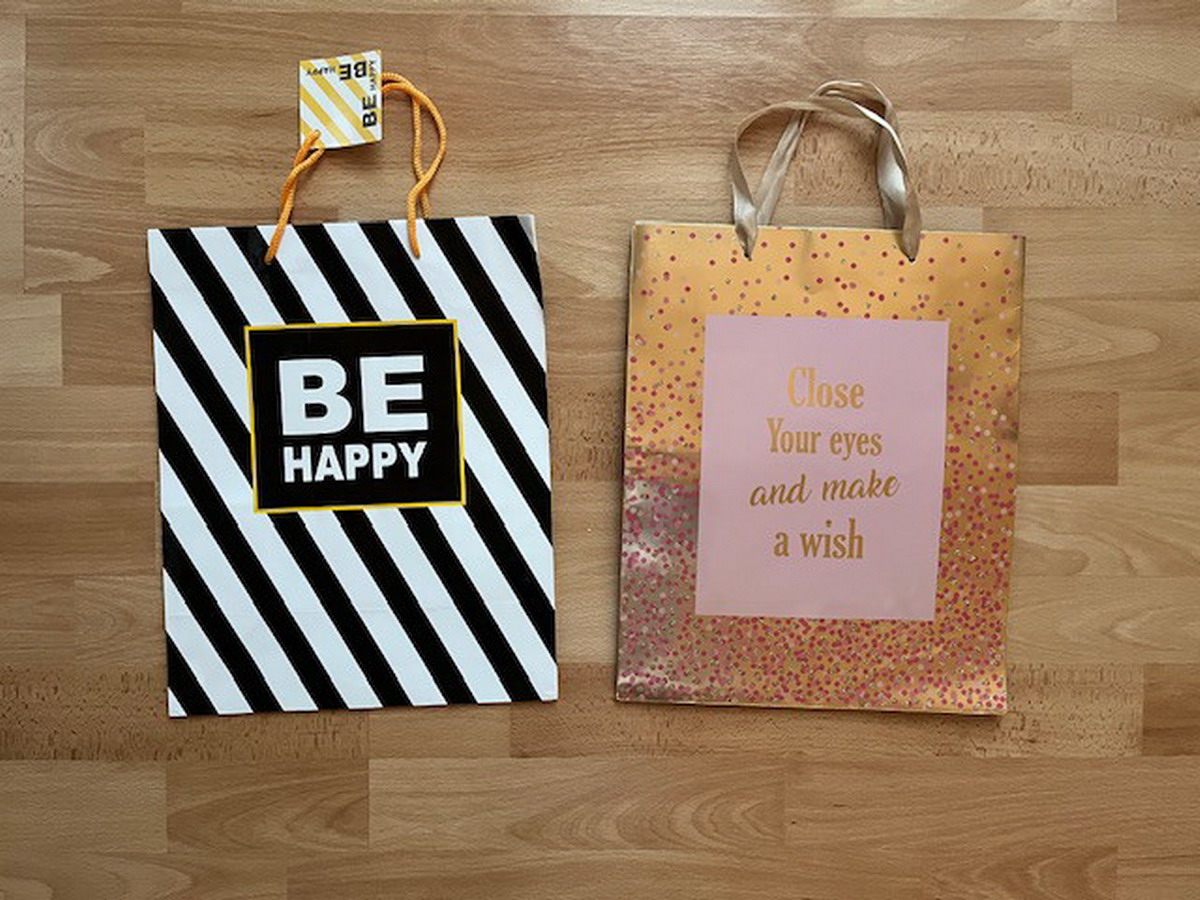 Papierové darčekové tašky, rozmer: 26x33 cm (2x), 29x38 cm (1x), 23x32 cm (1 ks), 18x22 cm (1x), 15x20 cm (1x), 15x15 cm (1x), 22x10 cm (1x)