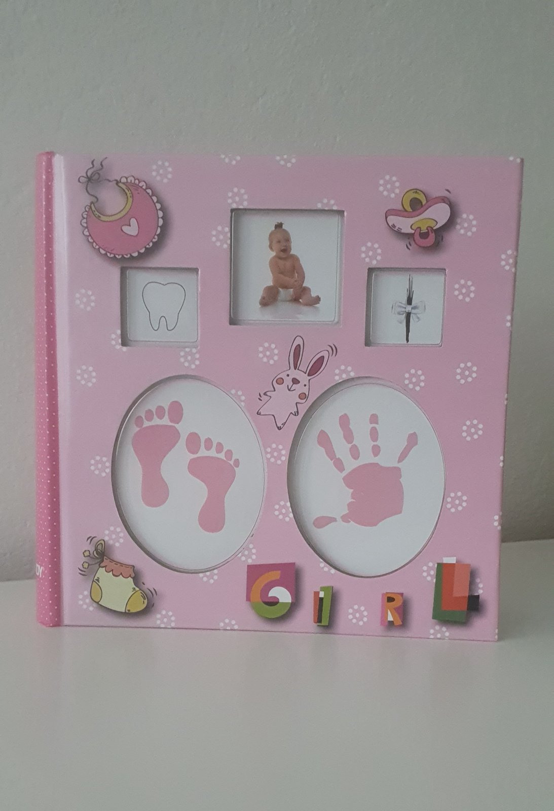 Predám spomienkový album pre dievčatko, možnosť dopĺňať fotky, vypisovať, odtlačky na titulnú stránku možno doplniť. Úplne nový.