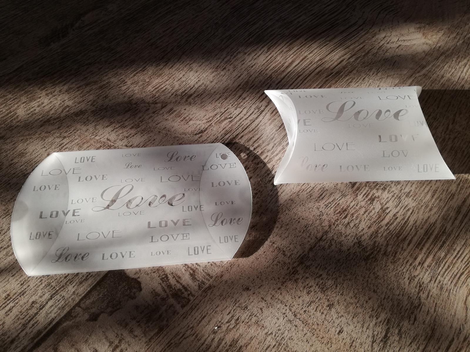 Na predaj prisvitné krabičky s nápisom Love - 13 ks. Ľahko skládateľné, vhodné napr. na cukrovinky, viď obr. ako sme ich použili my. (uvedena cena bez postovneho)